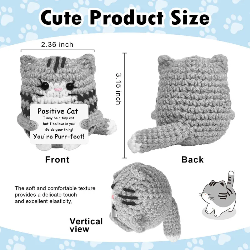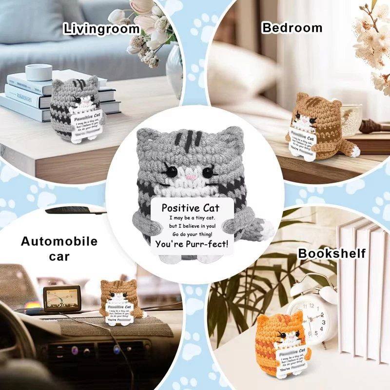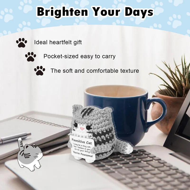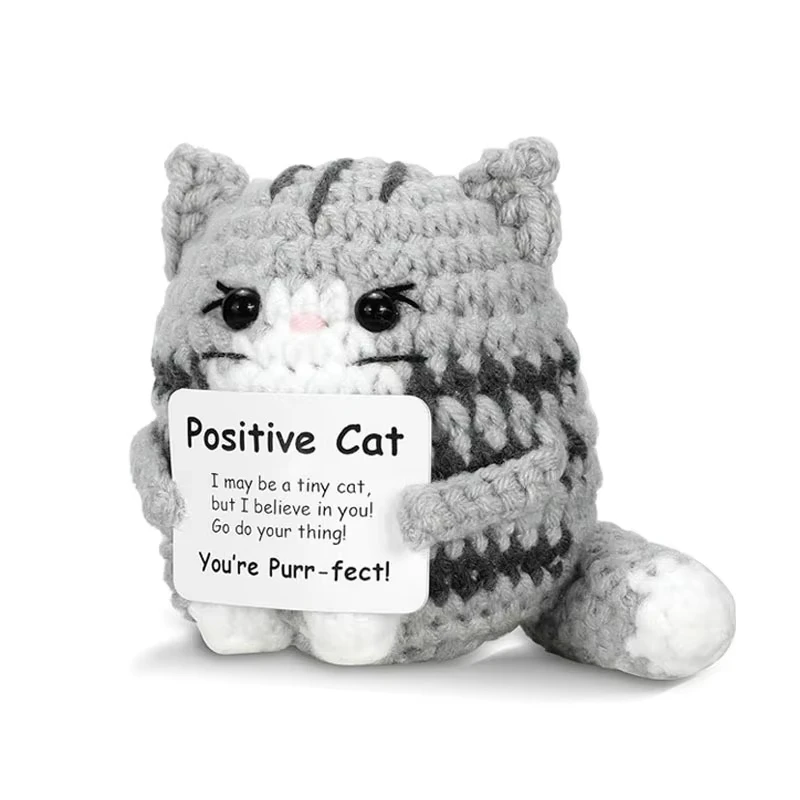 Positive Crochet Cat Mini Animal Emotional Cheer Up Support Gift Funny Crochet Mini Handmade Cat for ChrismasTeen Festival Gifts