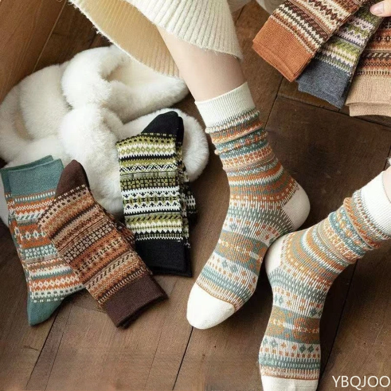 5 Pairs Stripe Round High Quality Women Socks New Witner Socks Man Socks Thick Warm Socks