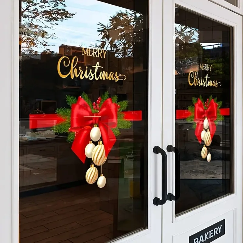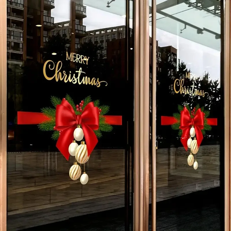 Christmas wallpaper New Year window display decorations Christmas ball stickers Christmas atmosphere bow wall stickers