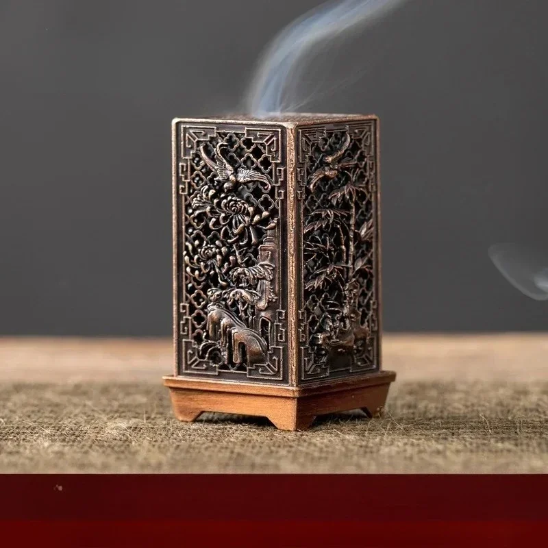 Square Vertical Incense Burner Small Xiangyun Alloy Incense Holder Indoor Aromatherapy Home Ornament Chinese Plum Inense Burners