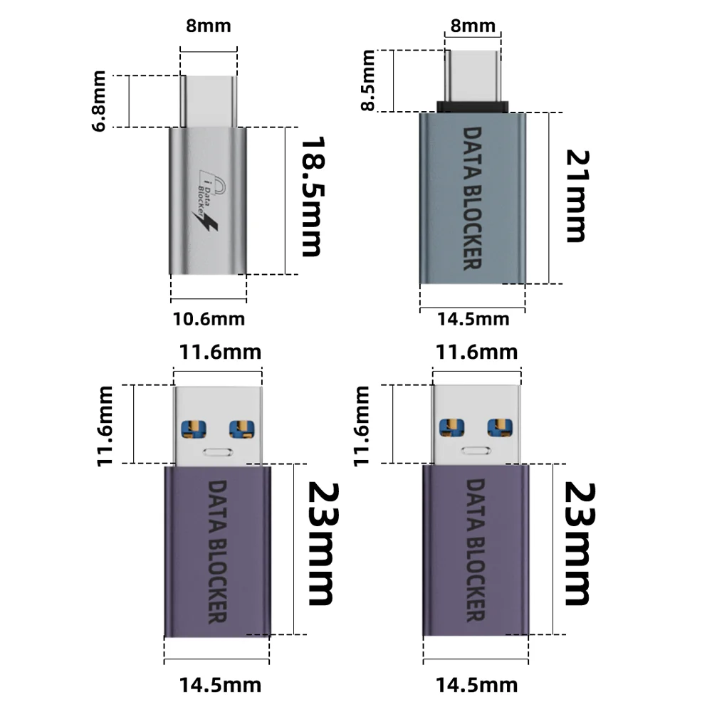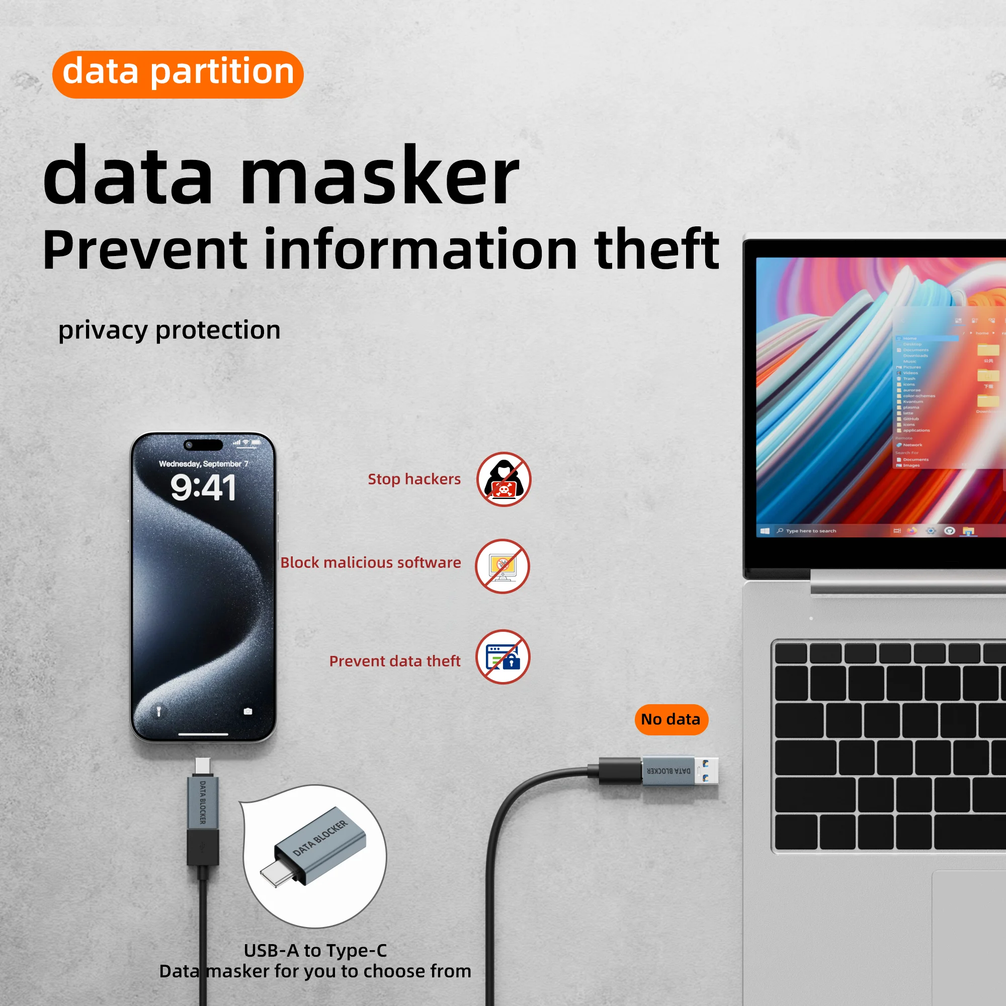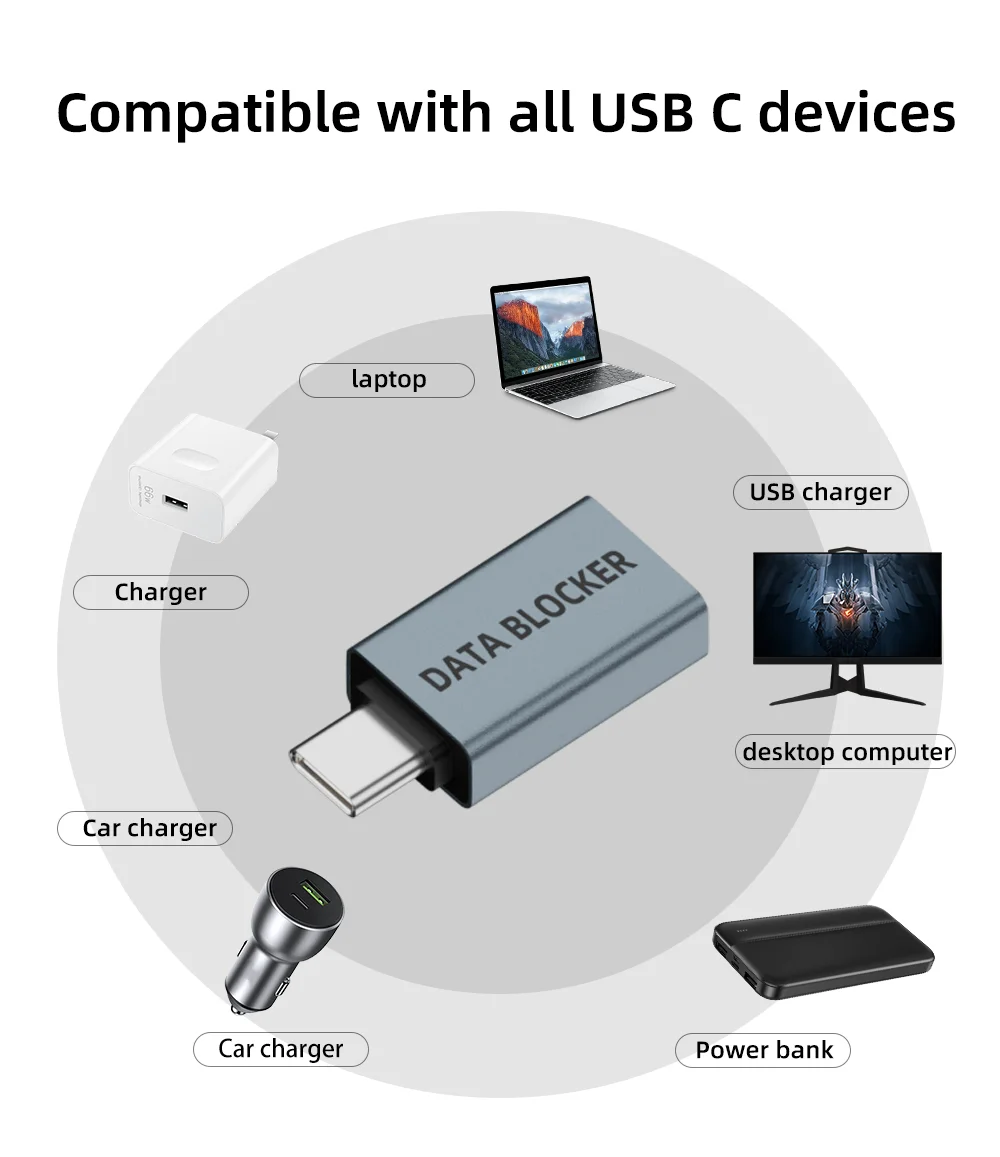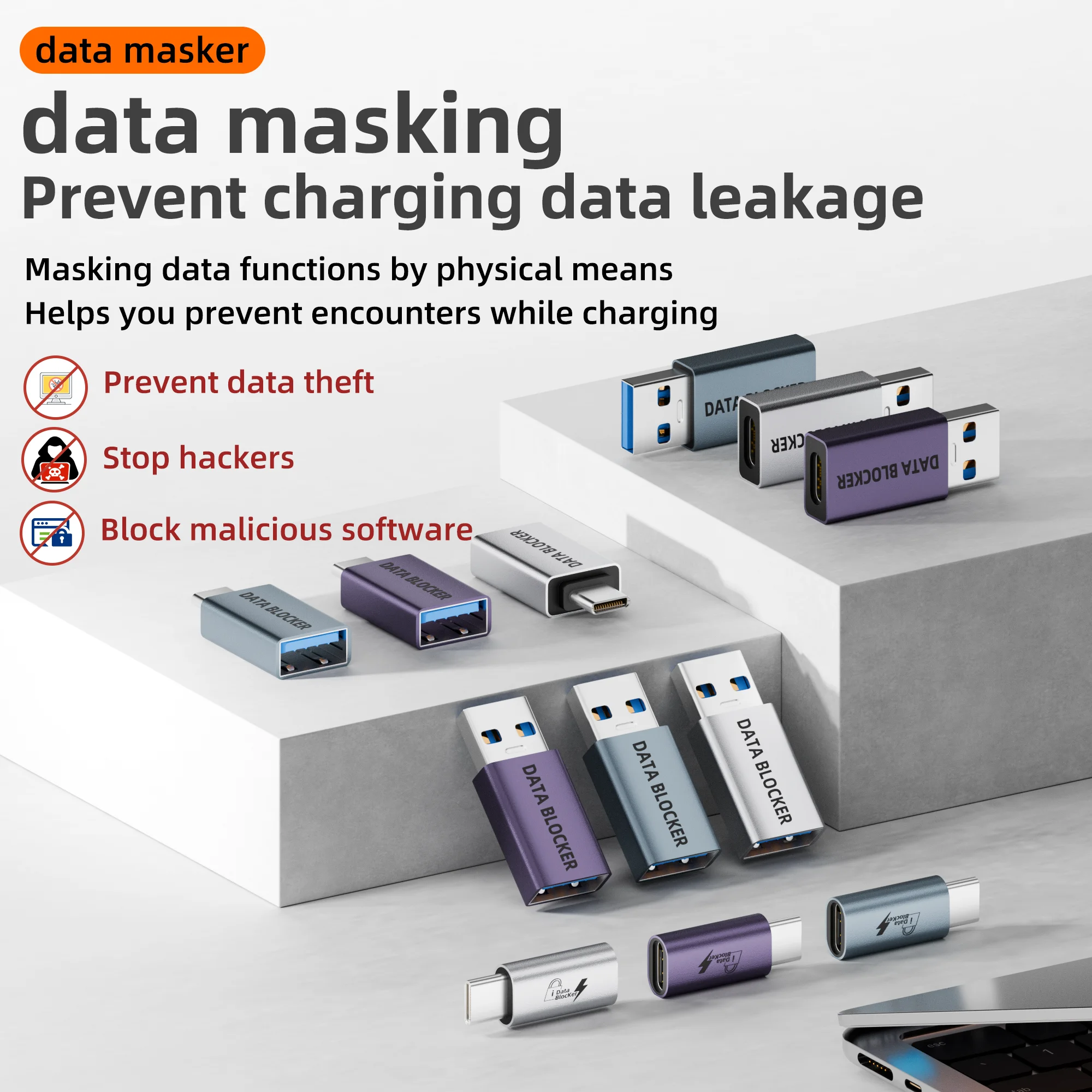 USB A/C To Type-C Data Shielding Adapter Charging No Transmission Shielding Data Anti-Theft Converter for Laptop Phablet Phone