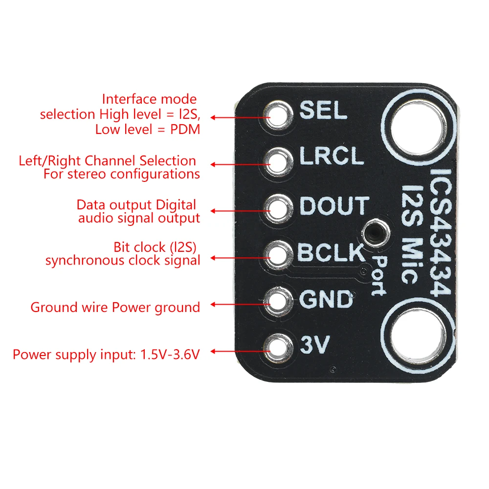 ICS-43434 I2S MEMS Microphone Module Breakout Low-Pass Mini Filter Module for Smart Voice Devices, Recording Systems, RC Drones