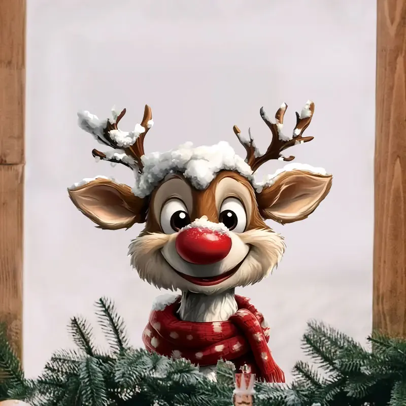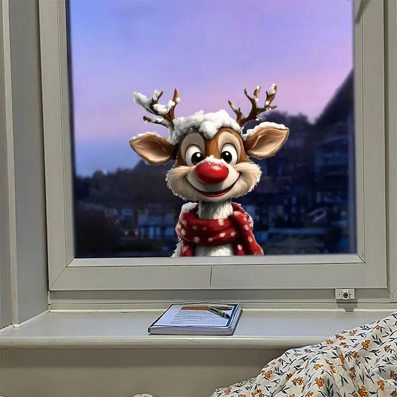 1PC Christmas Reindeer Window Stickers Waterproof for Home Decoration Window Glass Door DIY BathRoom Wall Universal Vinyl Decals