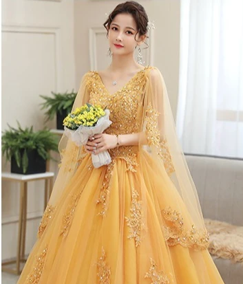 ALI shop - rezultati pretrage ... ... Evening Dresses Luxury 2025 Gold V-neck Lace Appliques Beaded Elegant Flare Sleeves Vestidos De Fiesta Woman 드레스 Customized ::: 2021 ::: :::