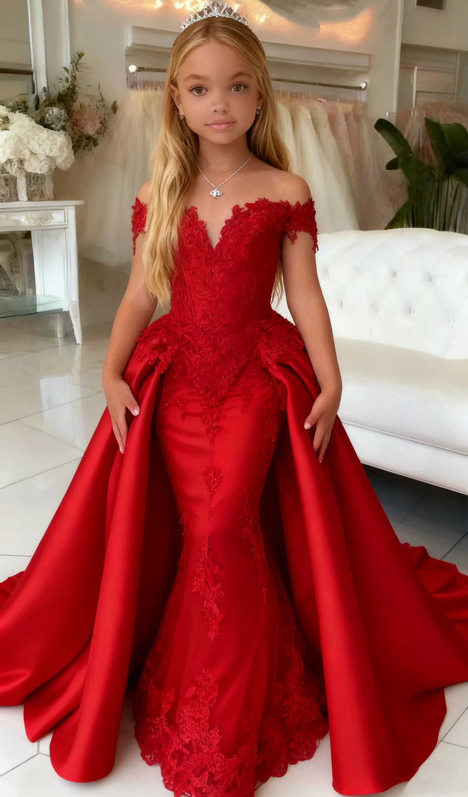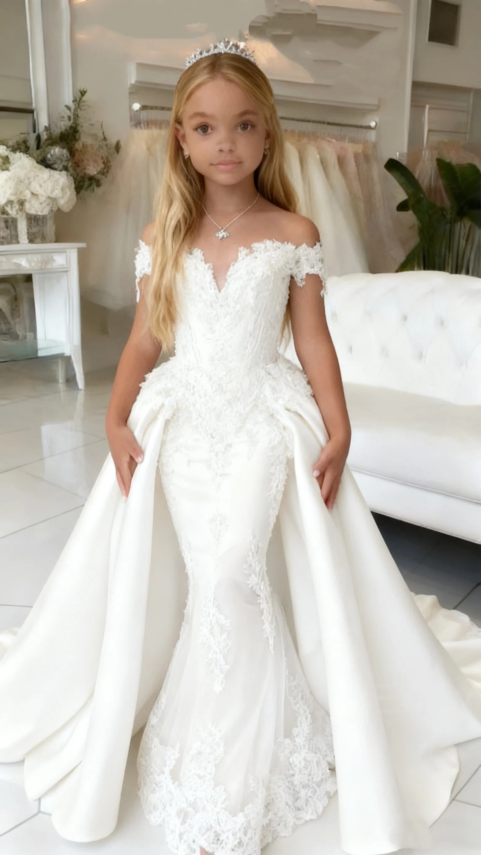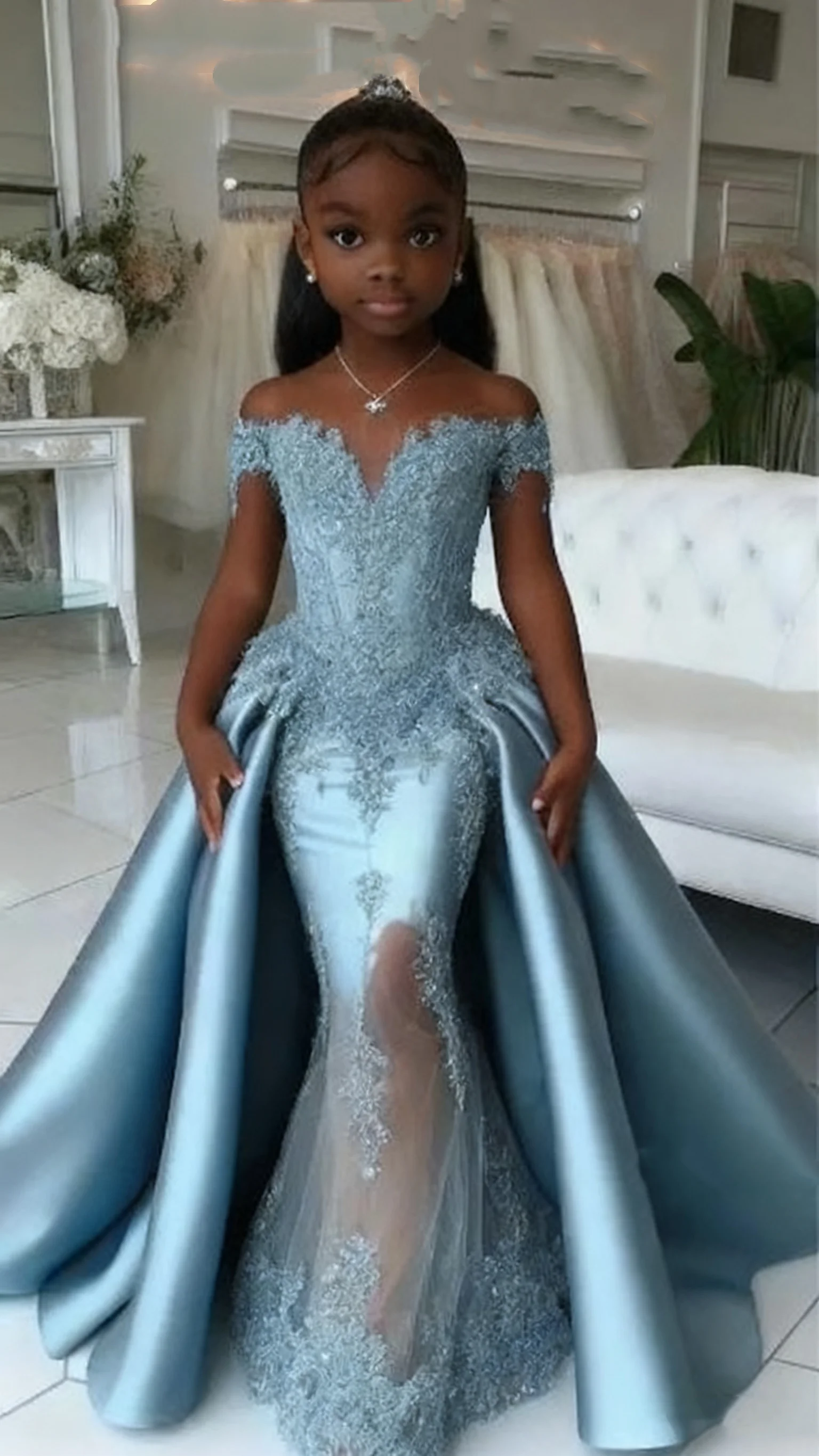ALI shop - rezultati pretrage ... ... Elegant Satin Applique Girl Mermaid Dress With Off Shoulder Design Suitable For Princess Birthdays Wedding Banquets ::: 2021 ::: :::
