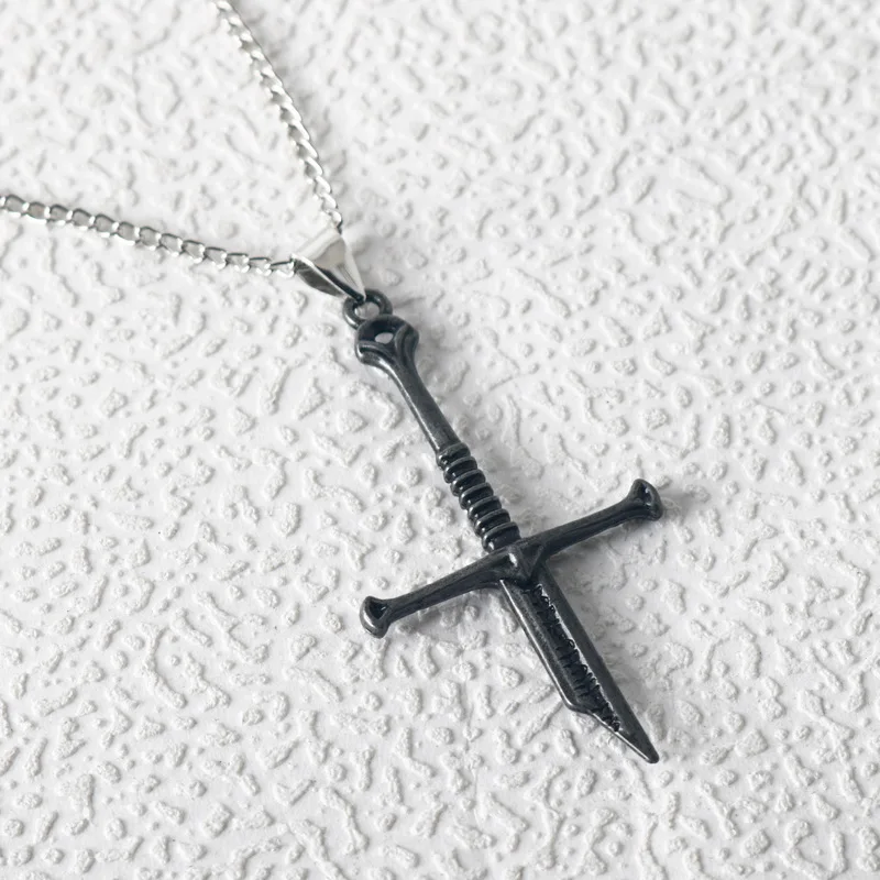 2pcs/set New Broken Sword Necklace Metal Elf Crystal Evenstar Pendant Necklace Punk Sword Necklace Man Woman Gift