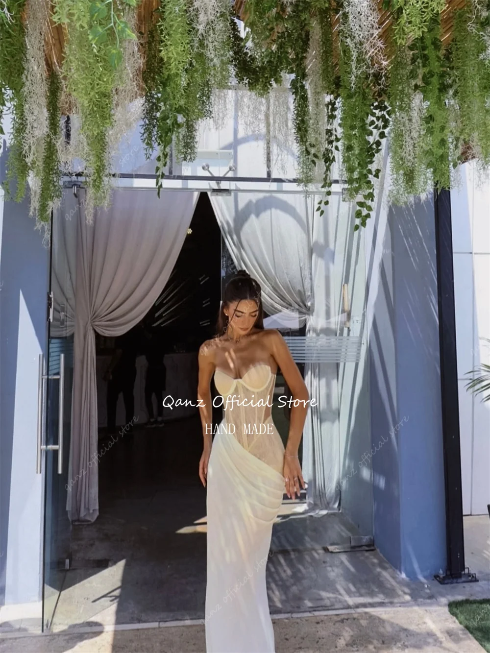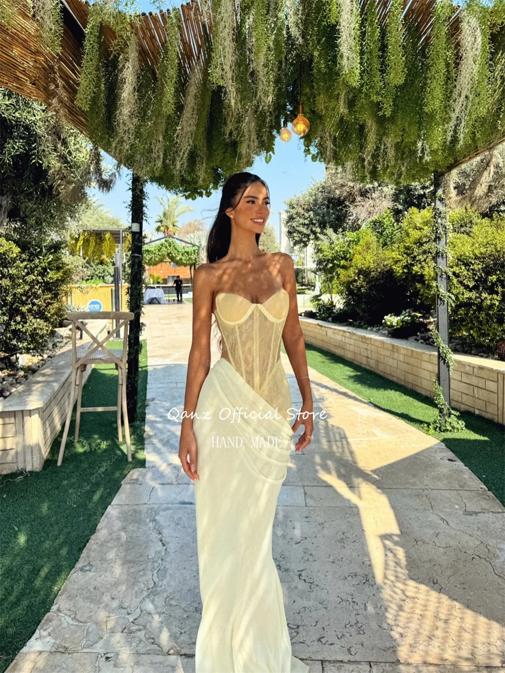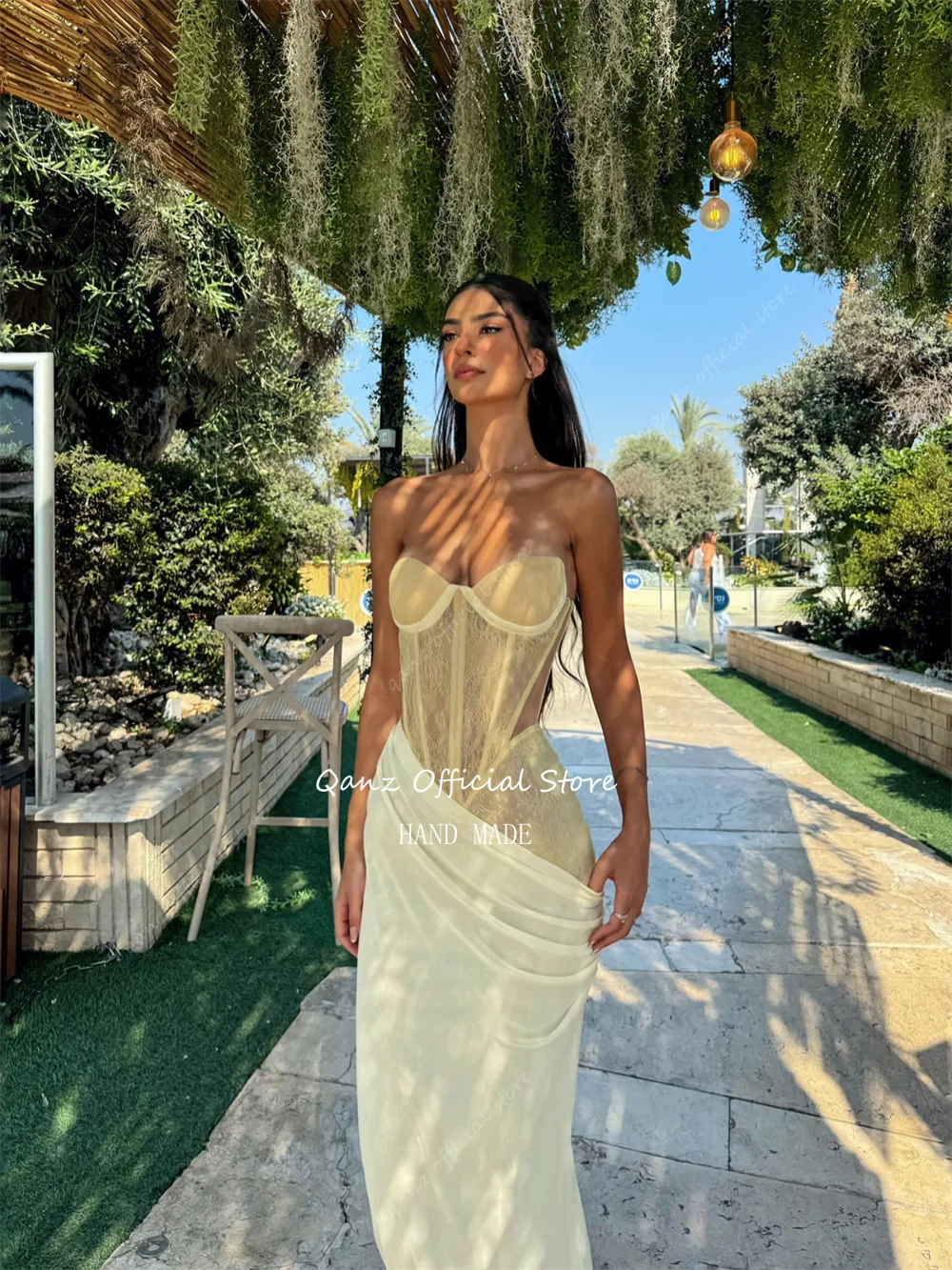 Qanz Elegant Women Evening Dresses Yellow Lace Sweetheart Mermaid Robes De Soirée Chiffon Backless Party Prom Gown Customized
