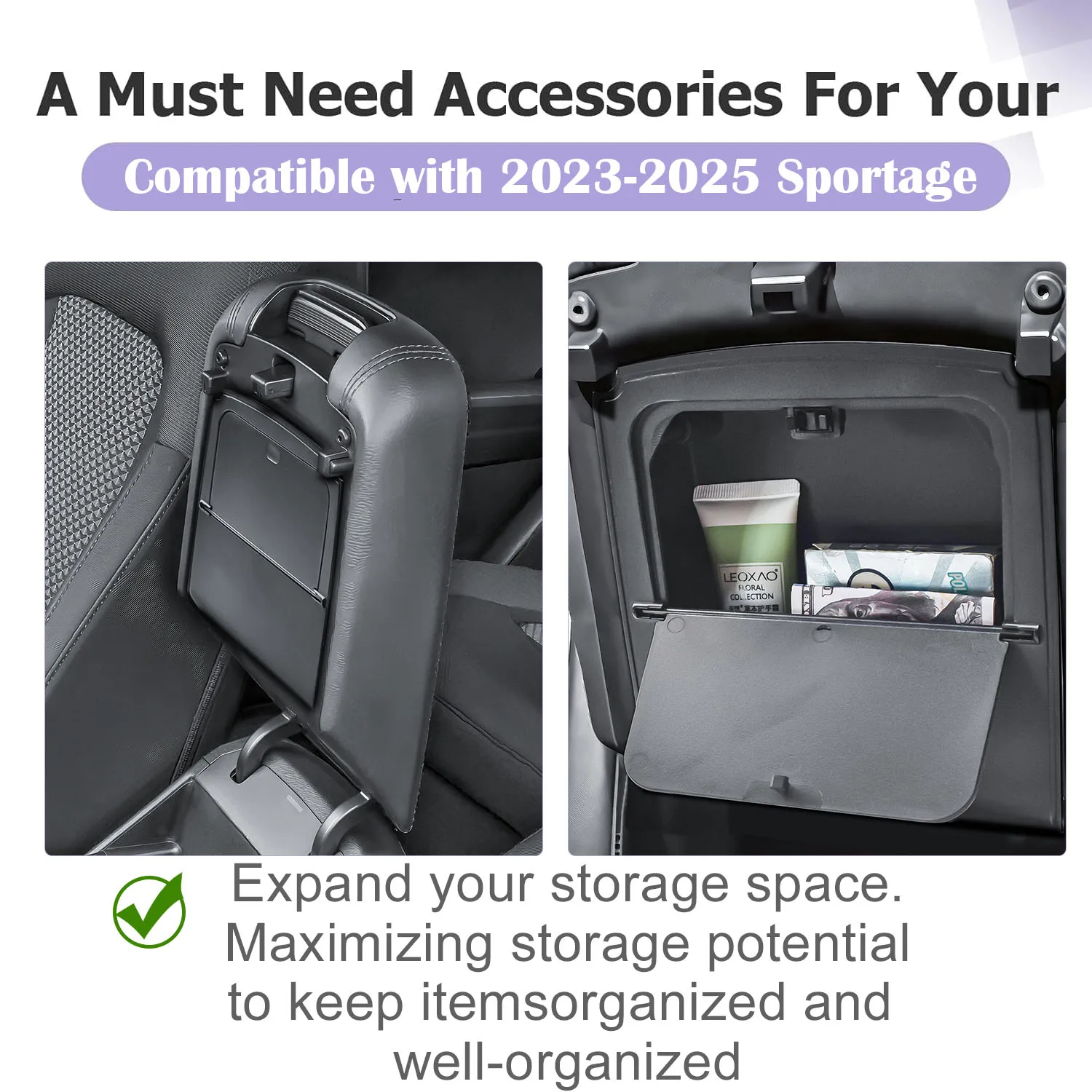 Armrest Hidden Box Tray for 2023 2024 2025 Sportage Center Console Organizer Secret Hidden Armrest Storage Interior Accessories