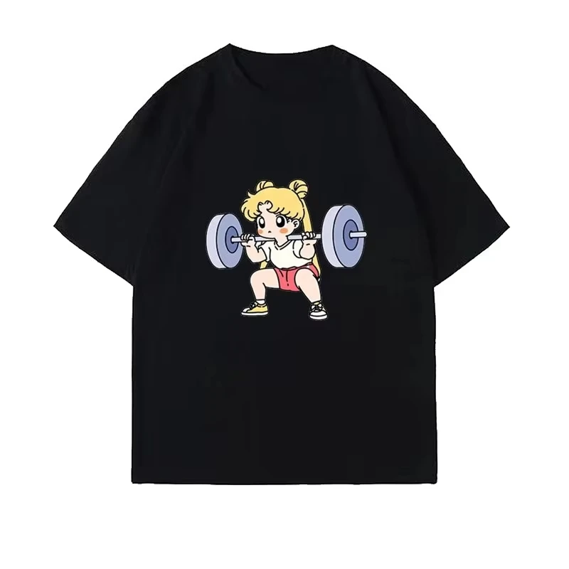 Sailor Moon Lifting Iron Fitness Women's T-Shirt Cotton Girl Children Parent-Child Summer Loose Cute Sweet Fun Short Sleeves Top