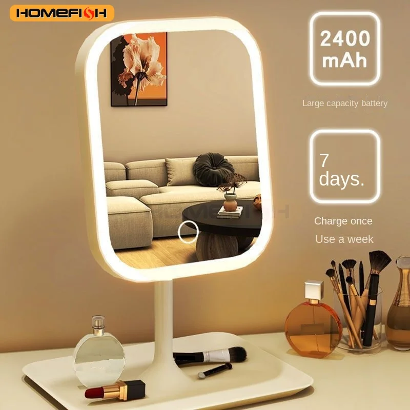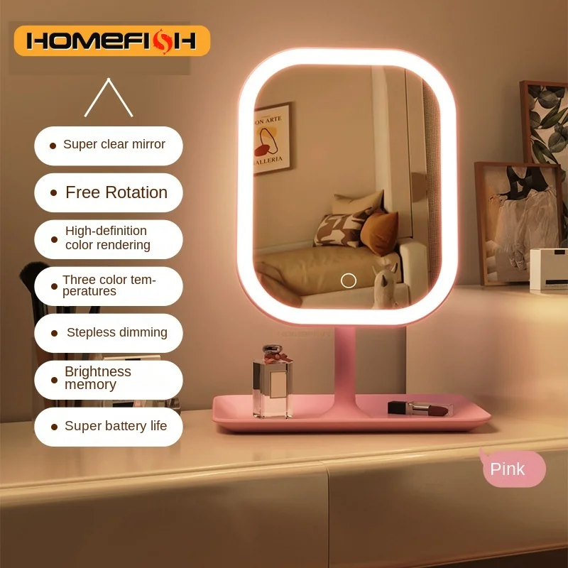 Niche Modern Desktop Vanity Mirror 3 Color Light LED Makeup Mirror Touching Mirror Women Bedroom Dressing Mirror