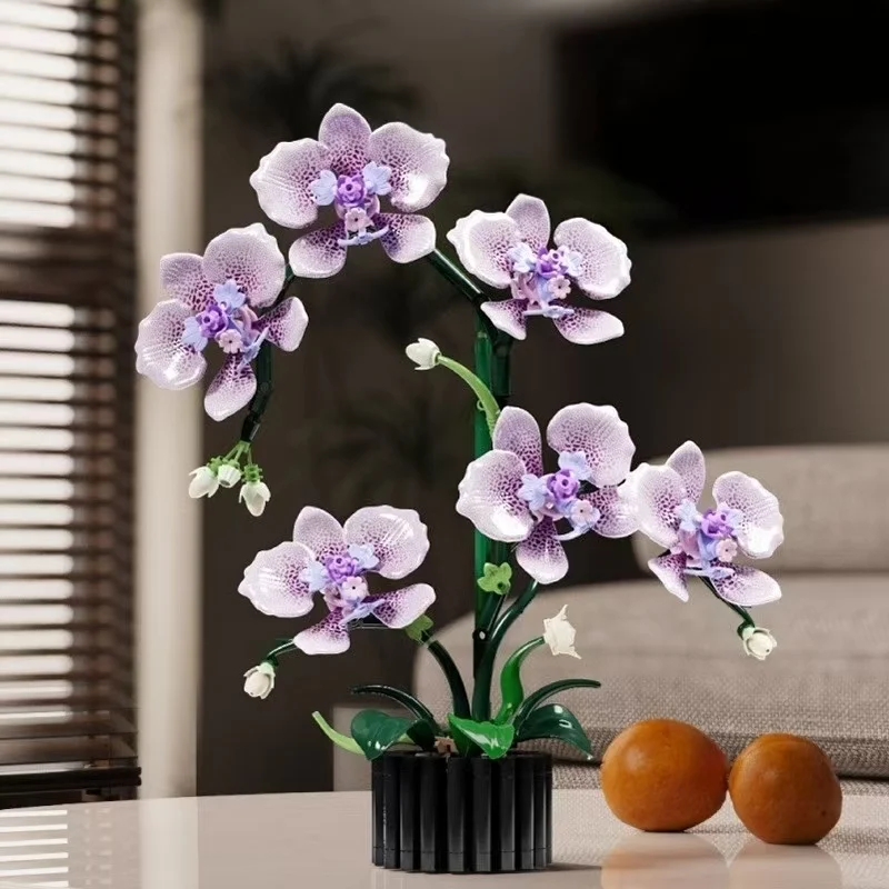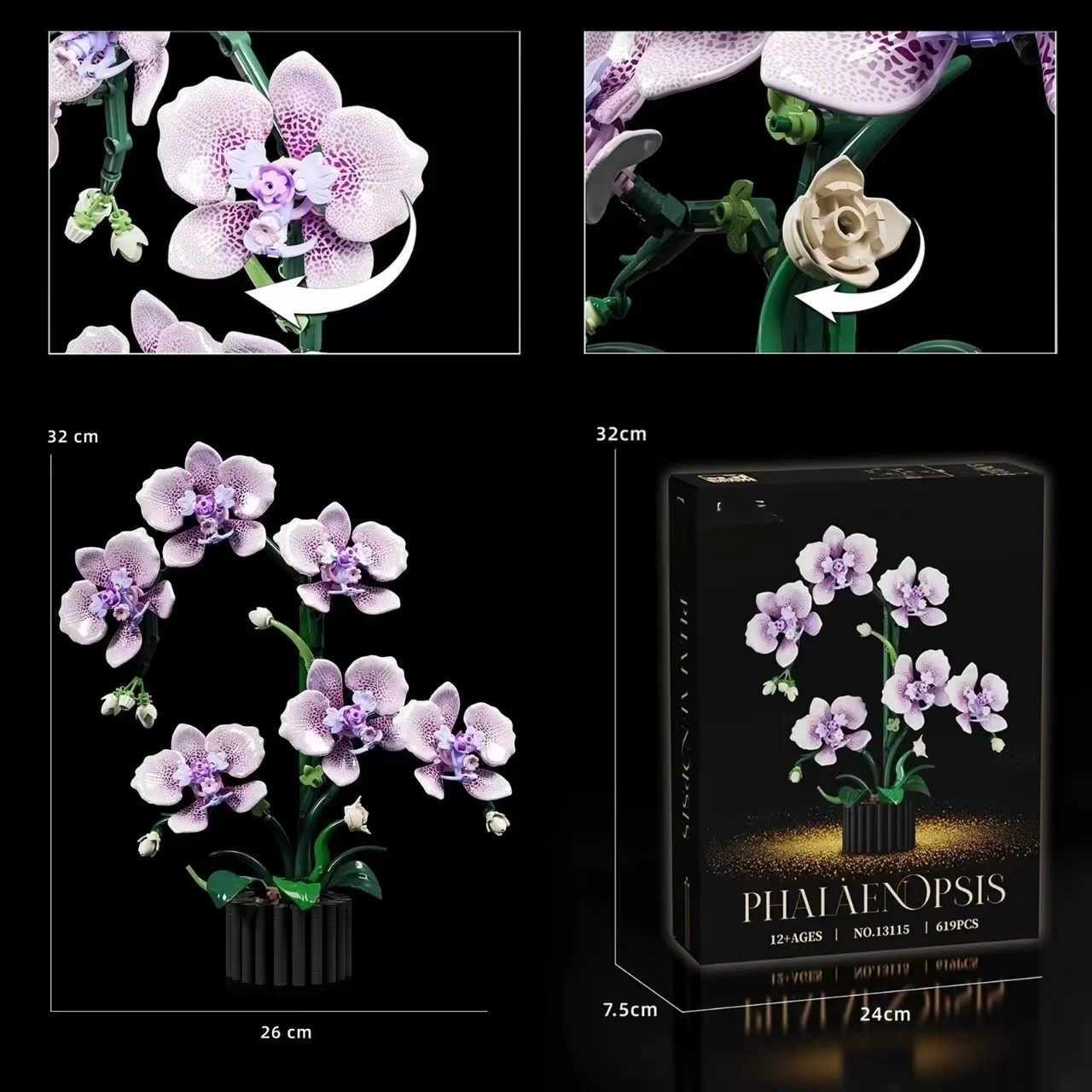 619PCS Phalaenopsis Building Blocks Flowers Orchid Potted Plants Simulation Model Home Decor Kids Puzzle Toy Girls Birthday Gift