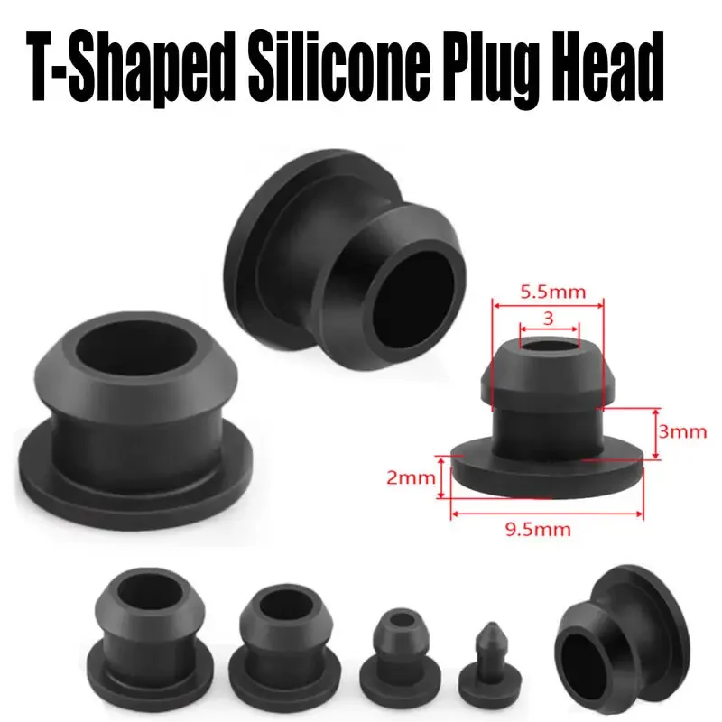 5~20Pcs Black Conical Snap-on Silicone Rubber T Type Plug 2.5-15mm Blanking End Caps Tube Inserts Bung Proof High Temperature