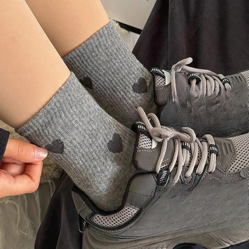 1/4/8 Pairs Women Socks Spring Autumn Breathable Sock Cute Heart Fashion Funny Gift Female Middle Tube Casual Socks