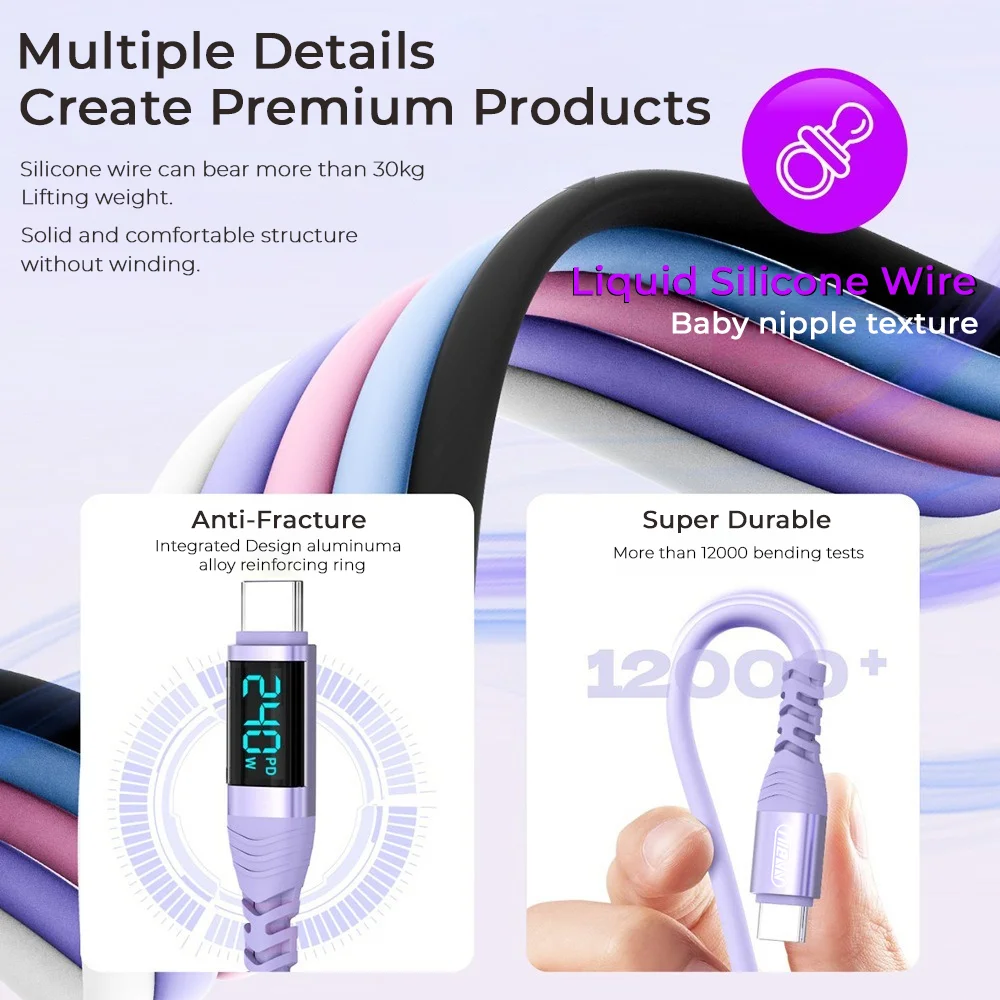 NNBILI 240W Digital display USB C To USB C Liquid silicone Cable PD 3.1 Fast Charging Wire For Macbook Pro for iPhone 17 pro max