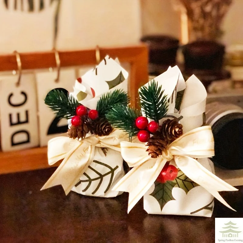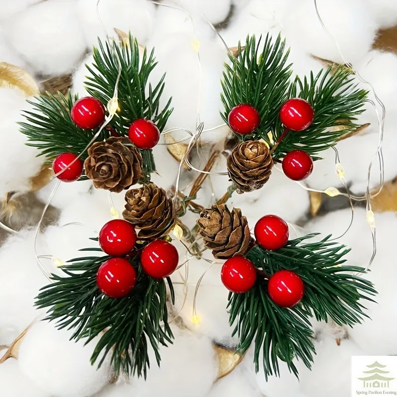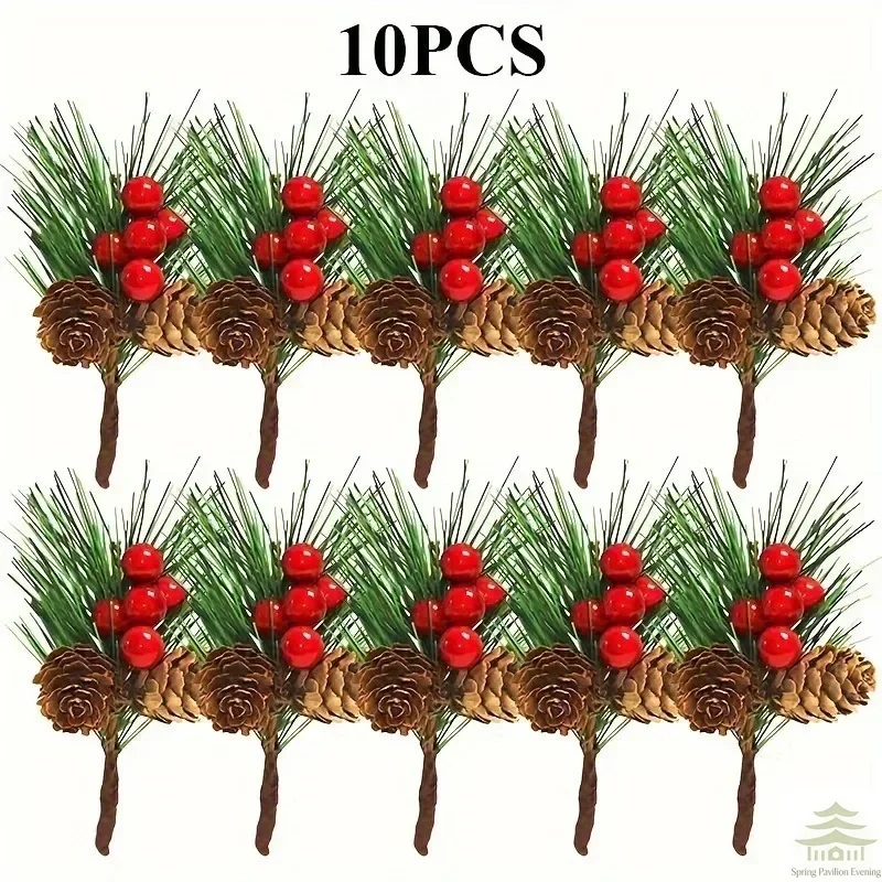 10pcs Set of Artificial Pine Cones and Red Berries - Perfect for Christmas Tree Toppers, Holiday Decorations, and Craft Projects