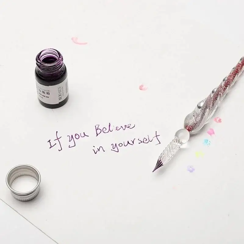 Crystal Glass Dipping Pen Gift Box Colorful Gold Powder Ink Signature Pen Set Creative Stationery Gifts For Friends Classmates
