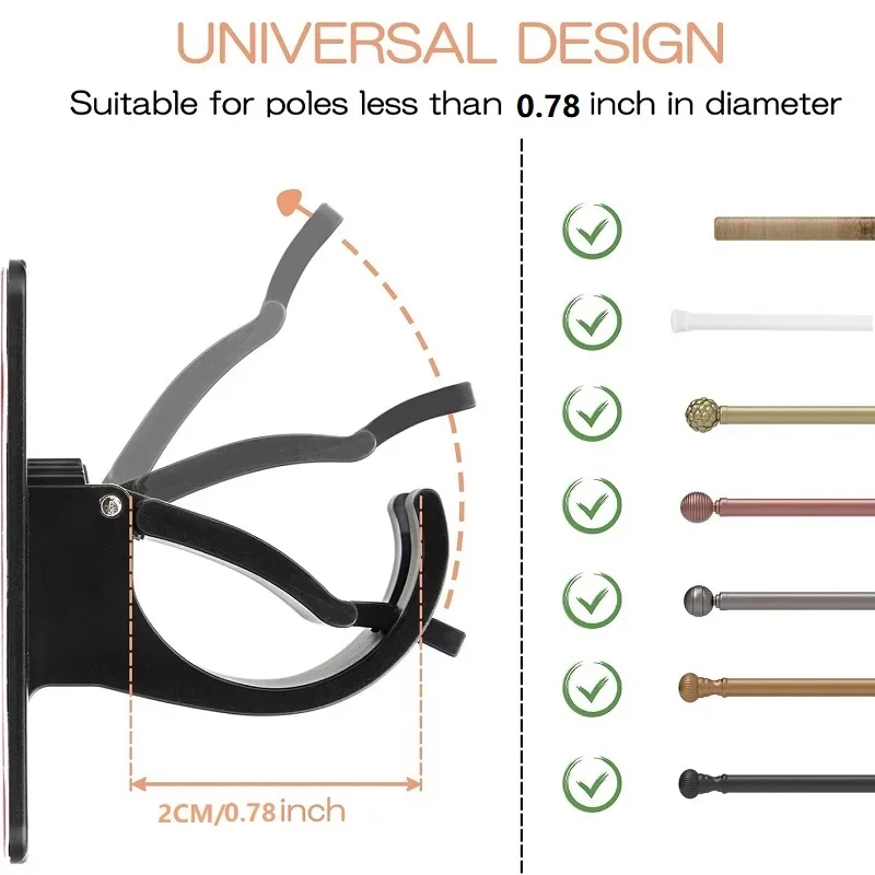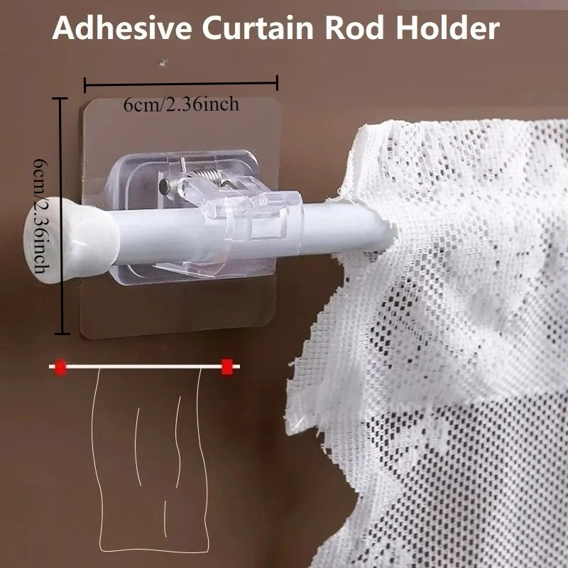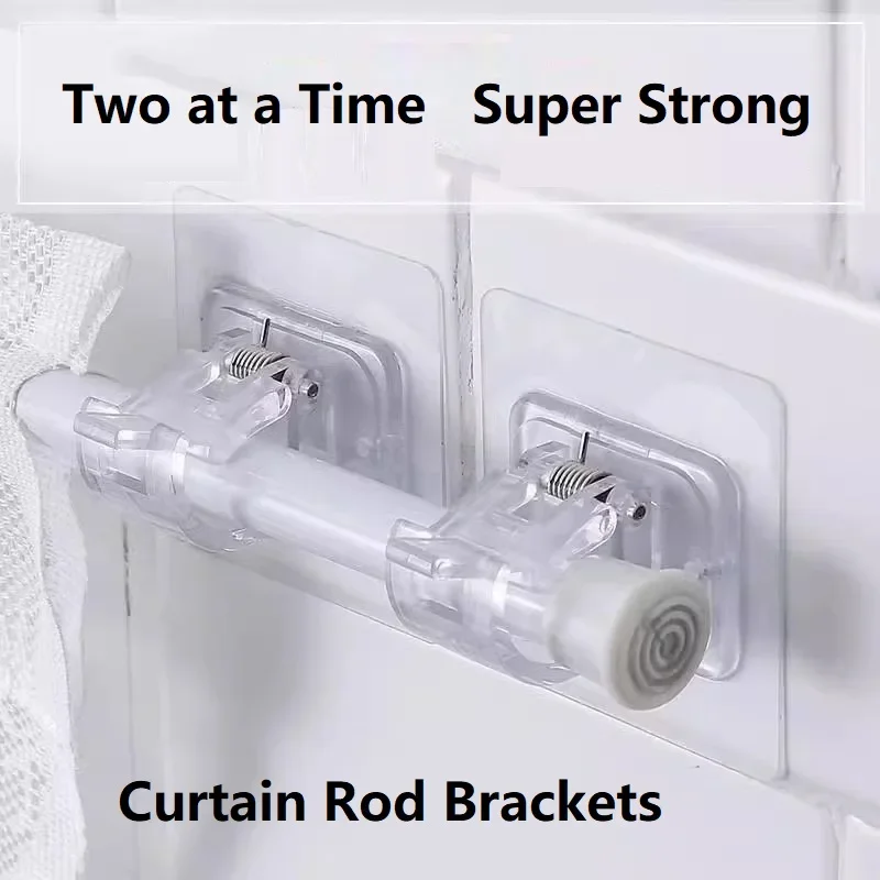 2pcs Curtain Rod Hook Punching-free Curtain Rod Rack Household Wall-mounted Bracket Clip Door Curtain Telescopic Curtain Hooks