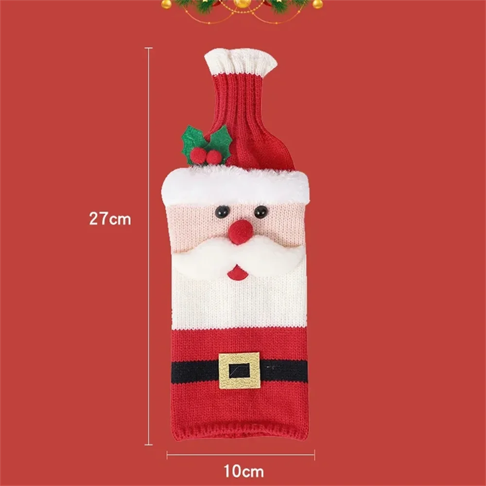 Christmas Wine Bottle Cover Set Santa Snowman Woven Wine Bottle Bags for Christmas Party Dinner Table Decorations New Year Gifts