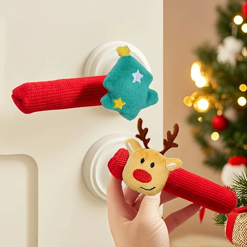 Christmas Holiday Decor Set - 1/4pcs Door Handle Gloves, Santa Claus Design, Home Christmas Tree Accessories
