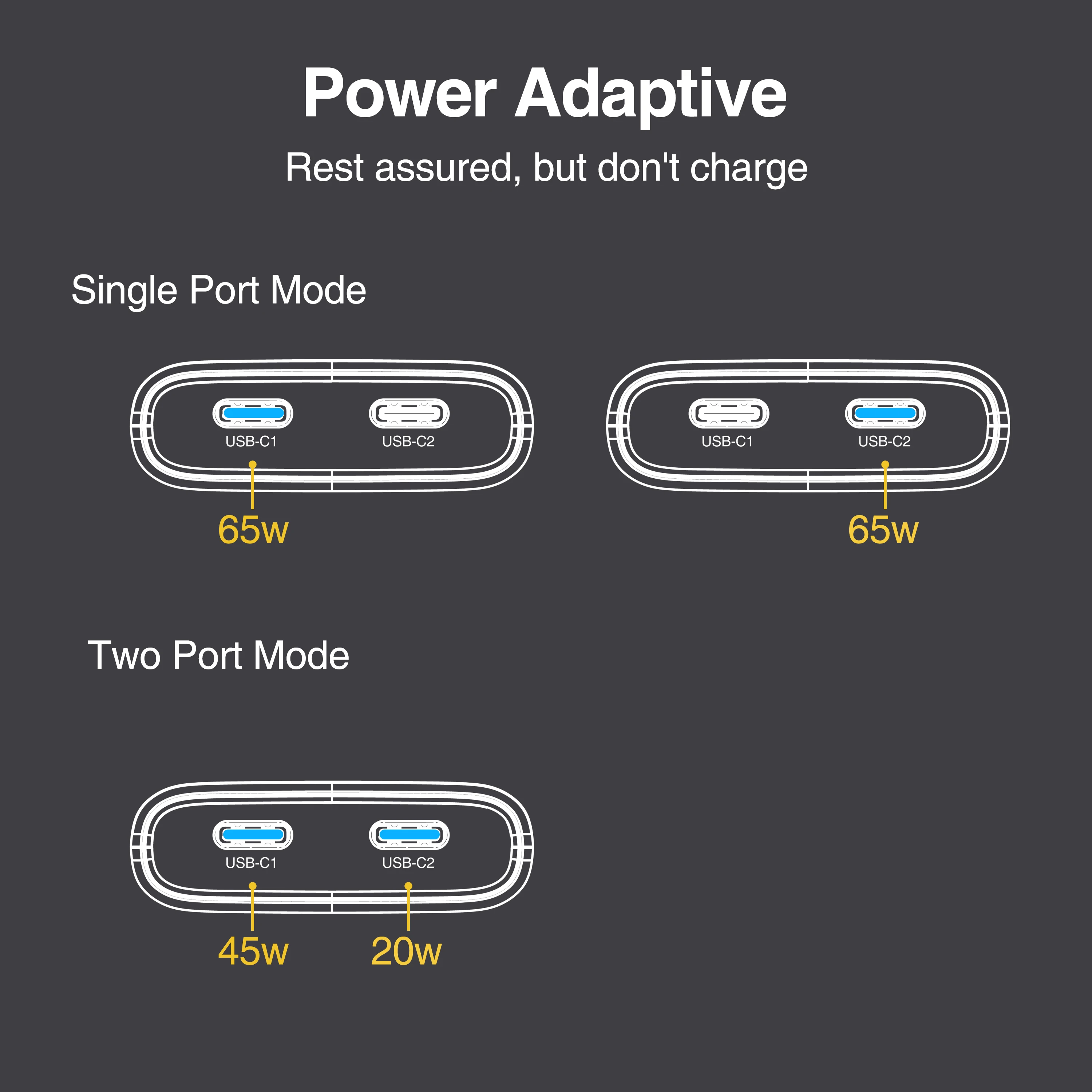 65W GaN USB C Charger 2-port Flat USB C Wall Charger With USB C Fast Charging Ultra-thin Foldable Plug Suitable For Mobile Phone