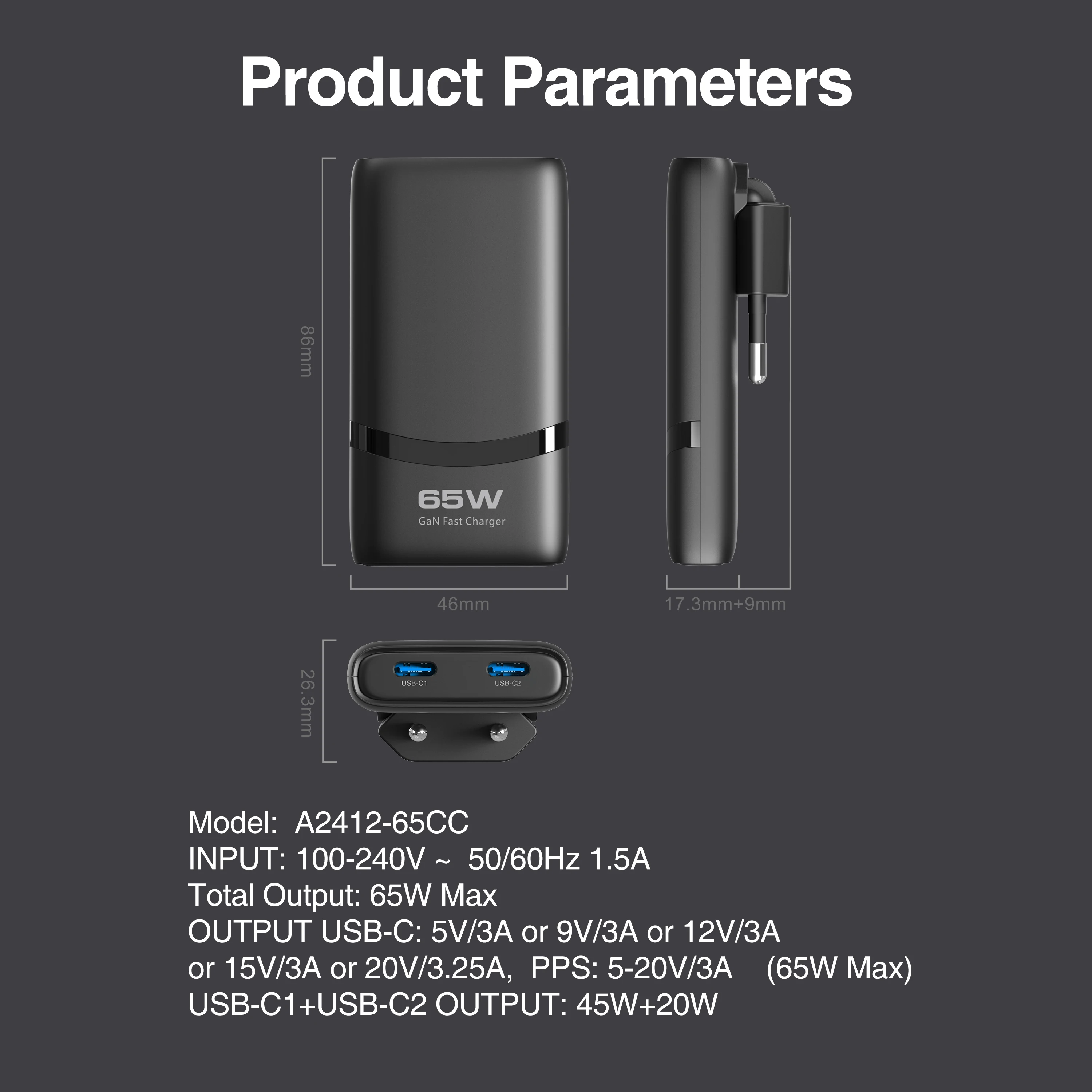 ALI shop - rezultati pretrage ... ... 65W GaN USB C Charger 2-port Flat USB C Wall Charger With USB C Fast Charging Ultra-thin Foldable Plug Suitable For Mobile Phone ::: 2021 ::: :::