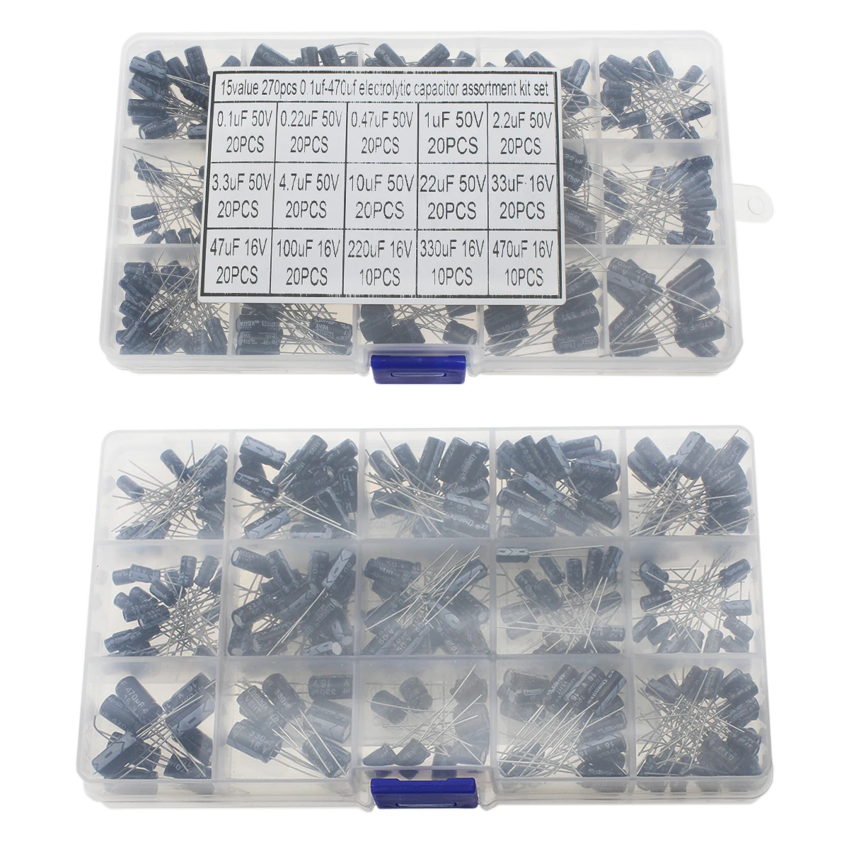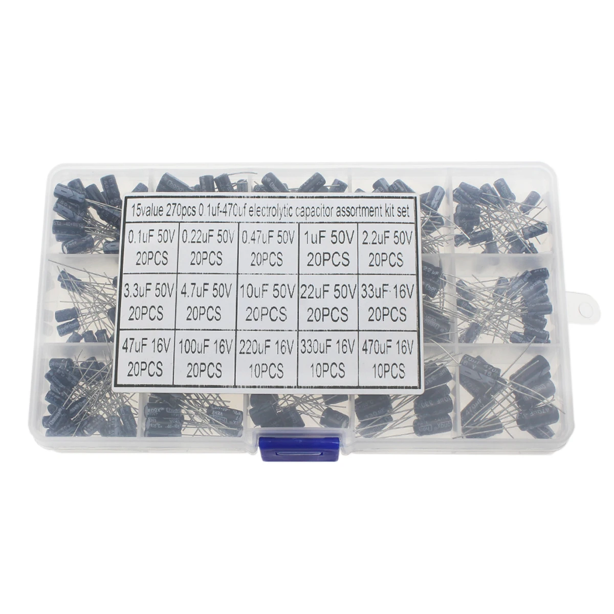 Electrolytic Capacitors Assortment Kit 16V 50V 0.1uf-10uF 22uF 33uF 47uF 100uF 220uF 330uF 470uF 270pcs/lot 15Values