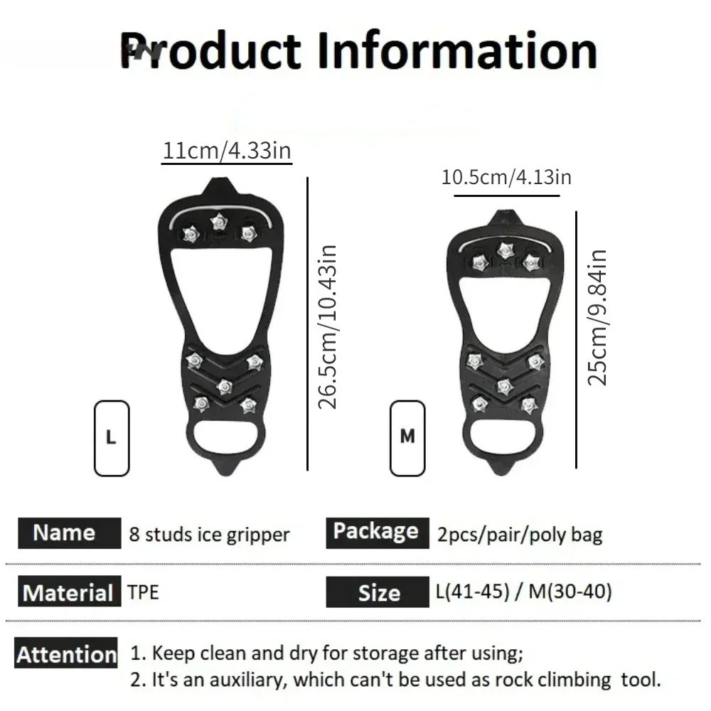 8 Teeth Ice Gripper Spike for Shoes Winter Outdoor Anti-Slip Hiking Mountain Climbing Ice Snow Crampons Anti-slip Shoe Covers