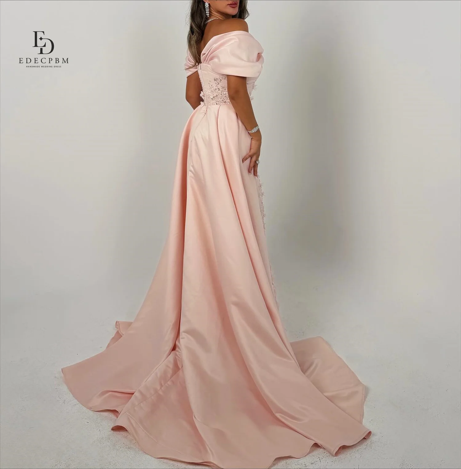 EDECPBM Elegant Party Dresses 2025 Off the Shoulders Customized Women Evening Dress 3D Flowers Pink Wedding Dresses for Parties