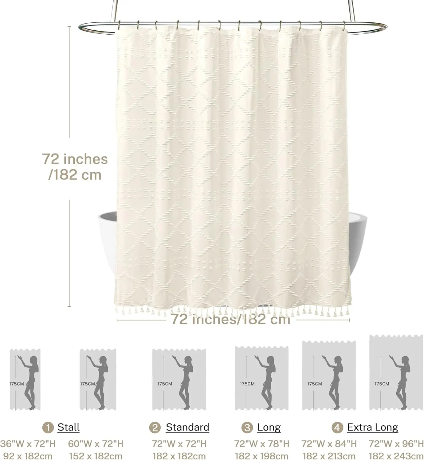 ALI shop - rezultati pretrage ... ... Soft Diamond-Patterned Shower Curtain - Waterproof Fabric with Boho Tassels,12 Plastic Hooks Included for Modern Bathroom ::: 2021 ::: :::