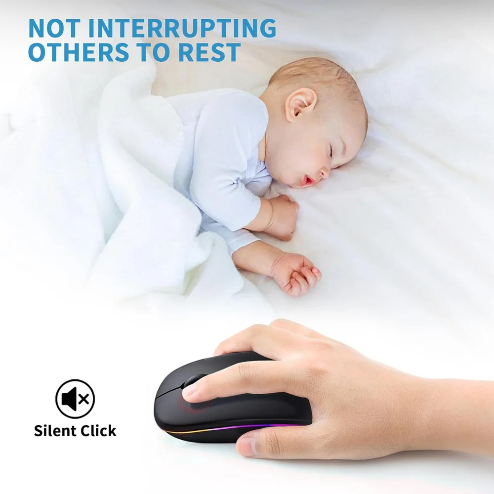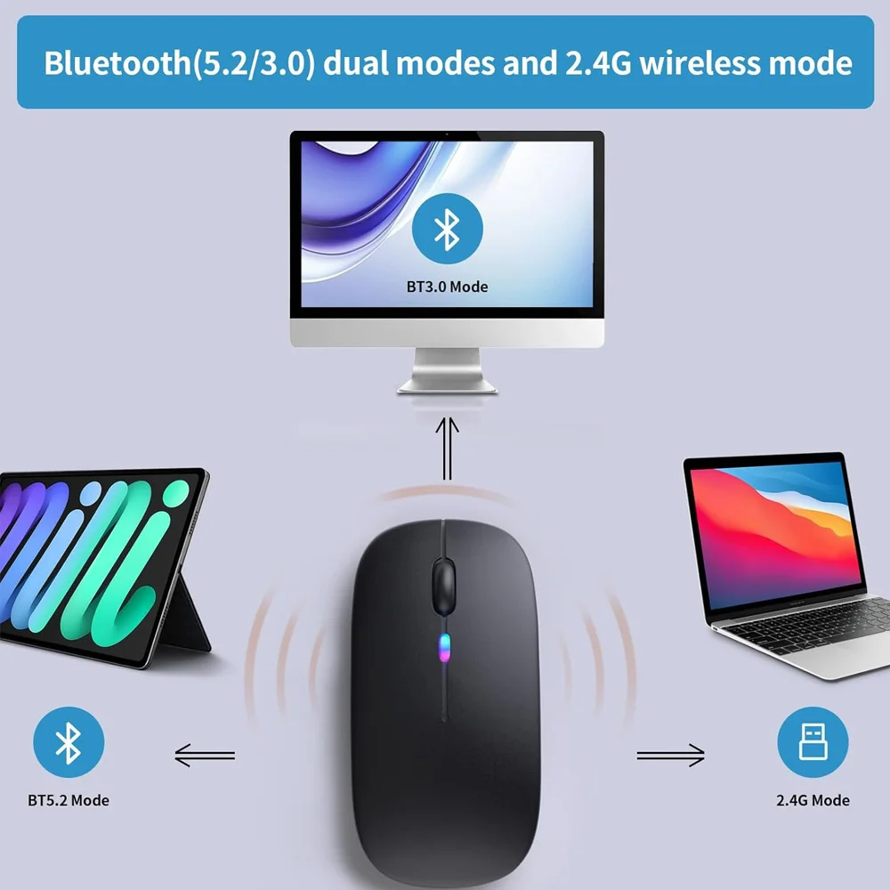 Wireless Bluetooth Mouse 2.4GHz Dual Modes RGB Rechargable Quiet Slim Wireless Mice Compatible For PC iPad Laptop PC Computer