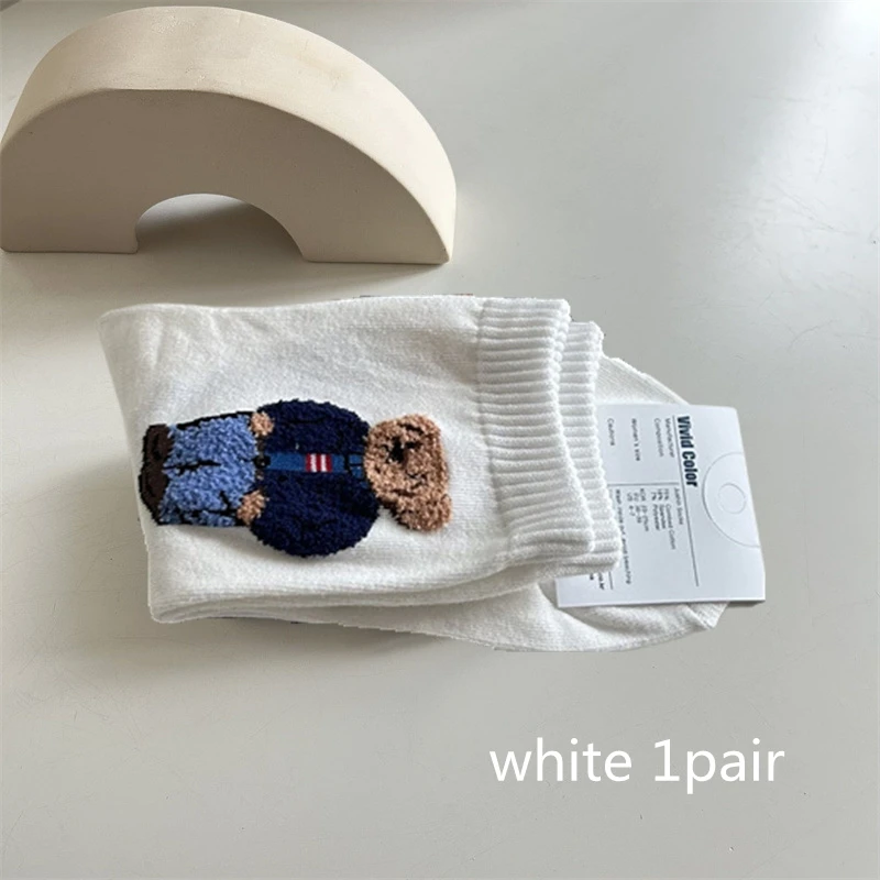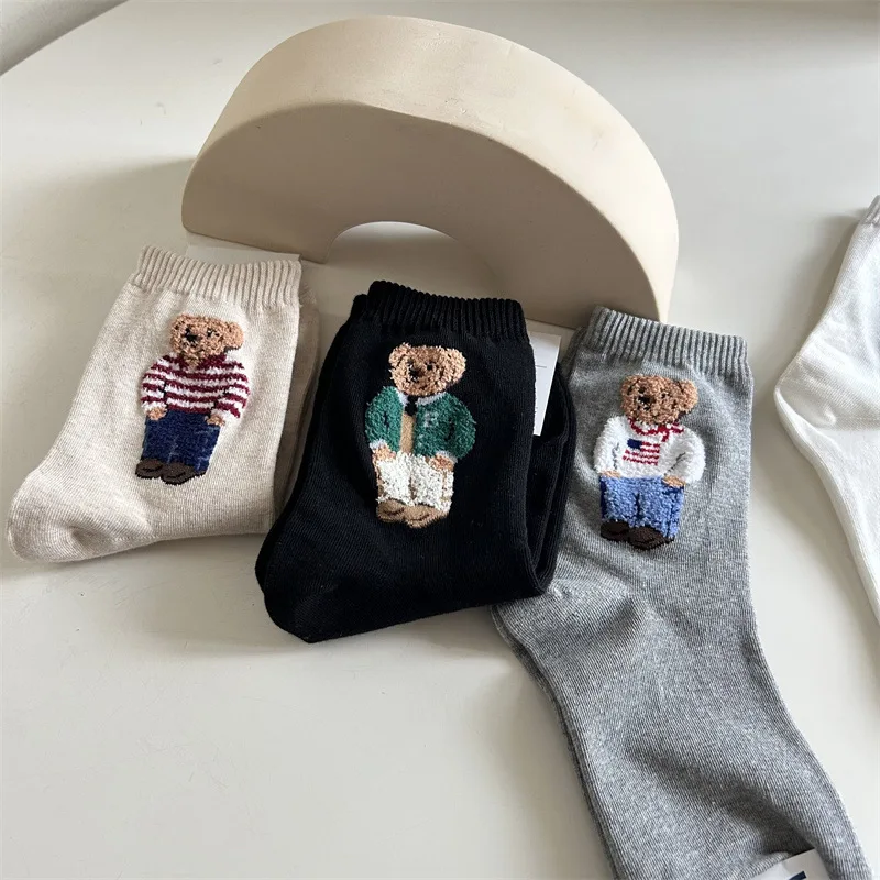 New Trendy Cartoon Bear Mid-Calf Cotton Socks for Women Casual Sweater Female Socks Comfortable Long Women Middle tube Socks
