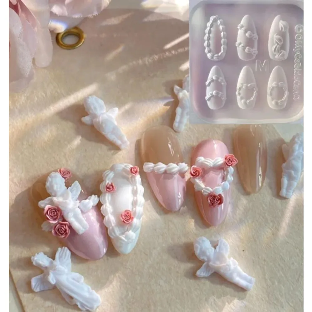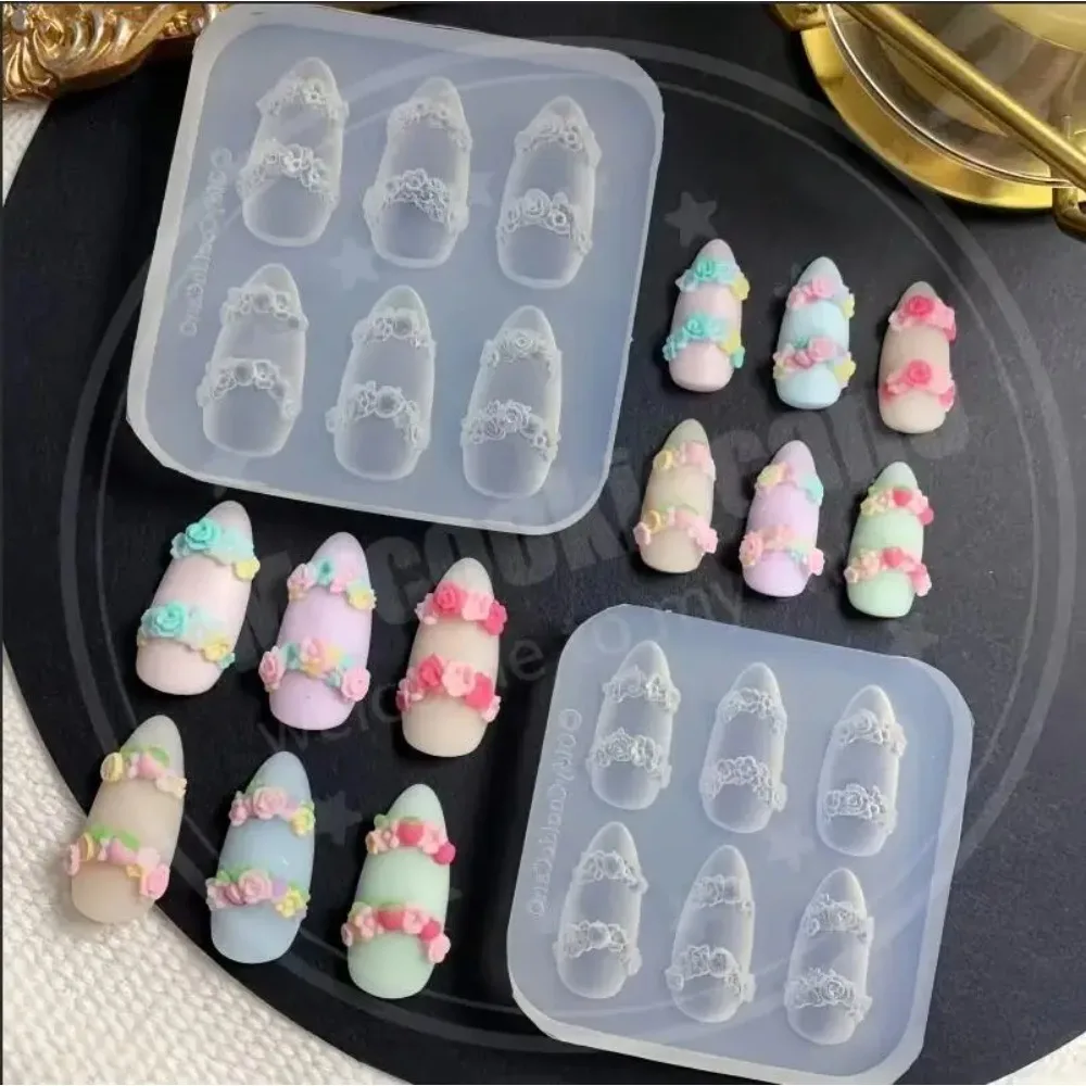 Cake Cream Lace Heart Silicone Nail Mold Sweet Y2K Nail Art Decorations Template DIY Design Transparent Manicure Stencils 1