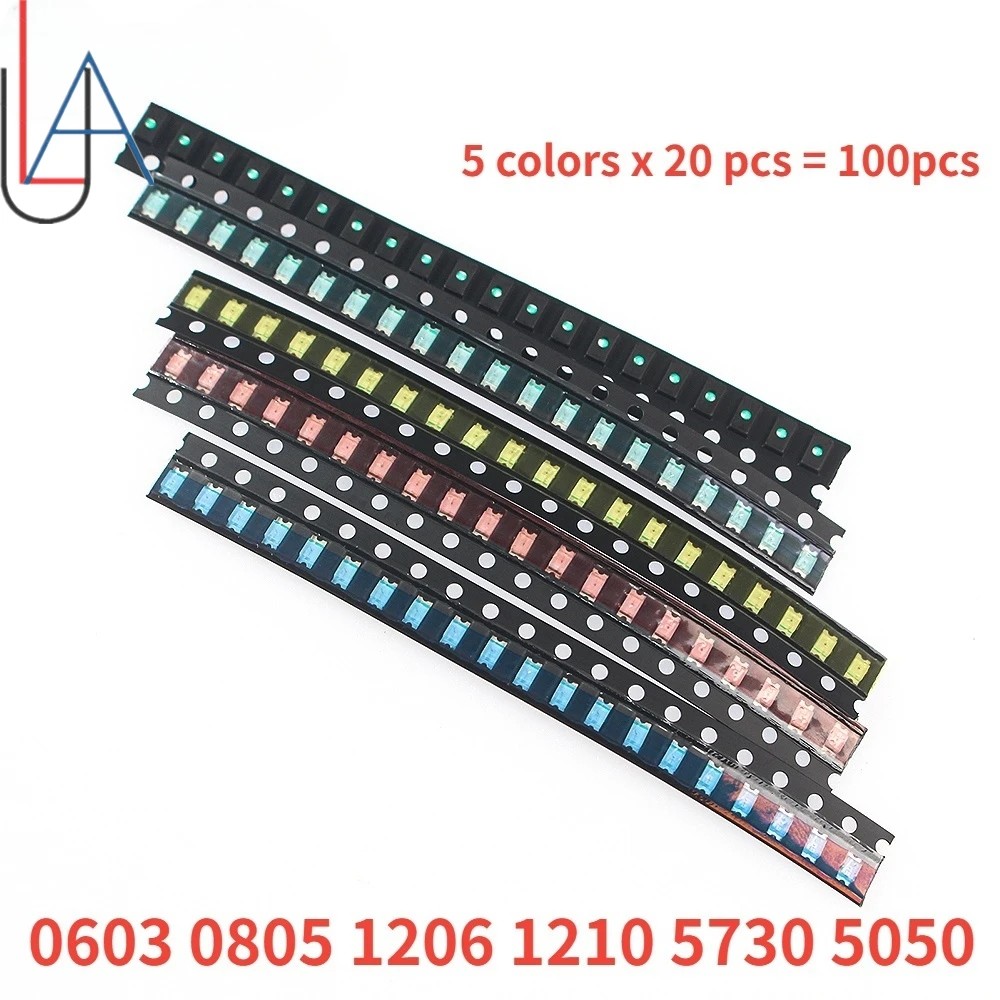 SAMIROB 100pcs 0603 0805 1206 1210 5730 5050 SMD LED Light Emitting Diode Kit 5 colors Miniature LED Red White Yellow Green Blue
