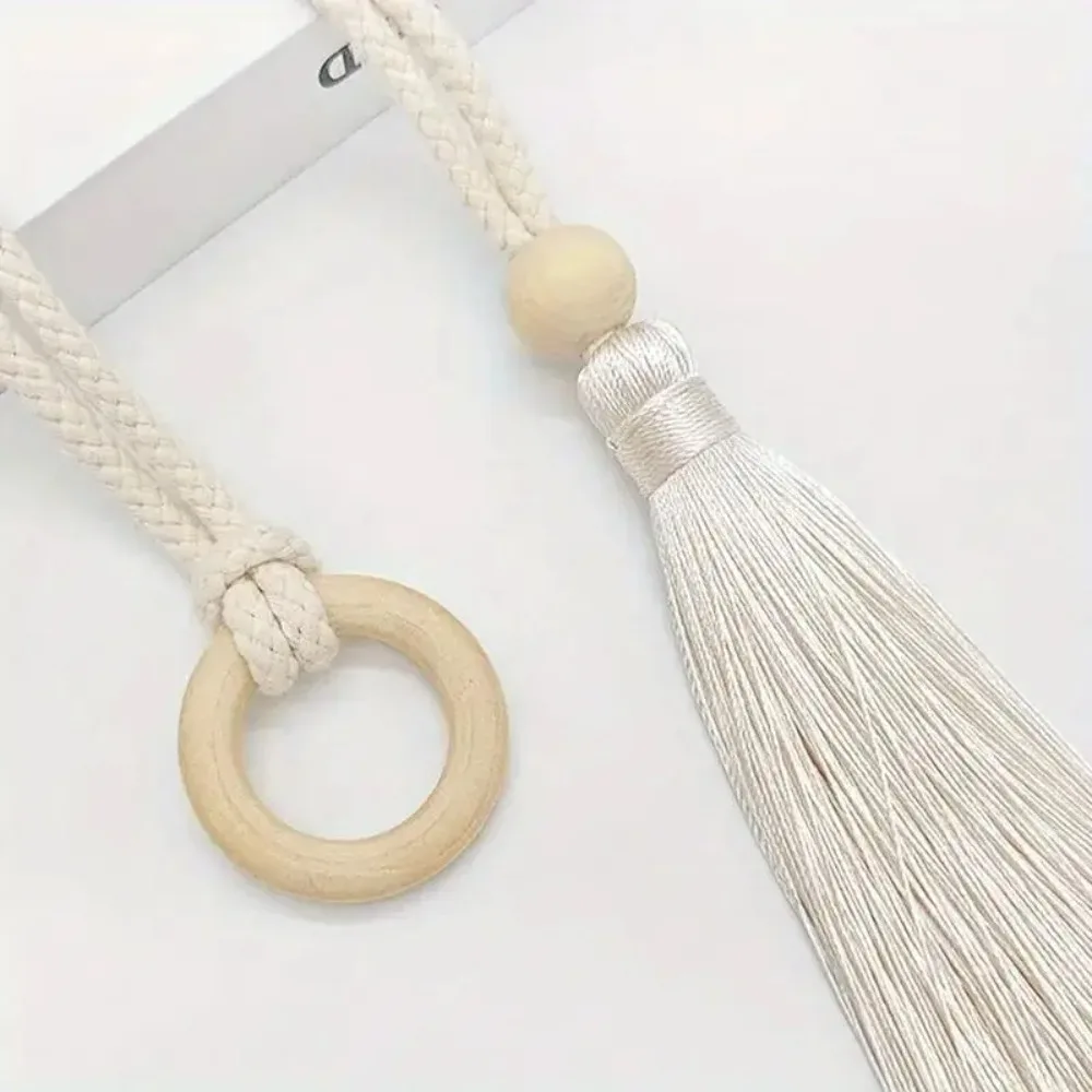 2pcs Bohemian Chic adjustable cotton cord curtain tie fringe - hand woven, log loop curtain buckle strap
