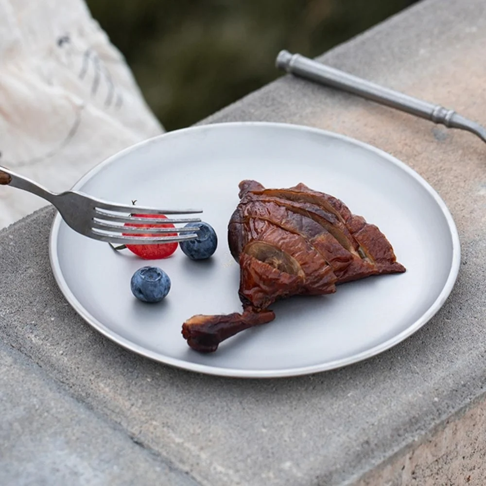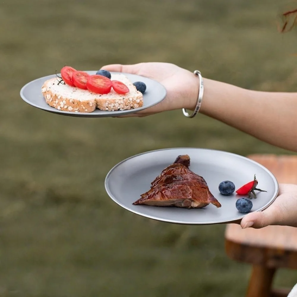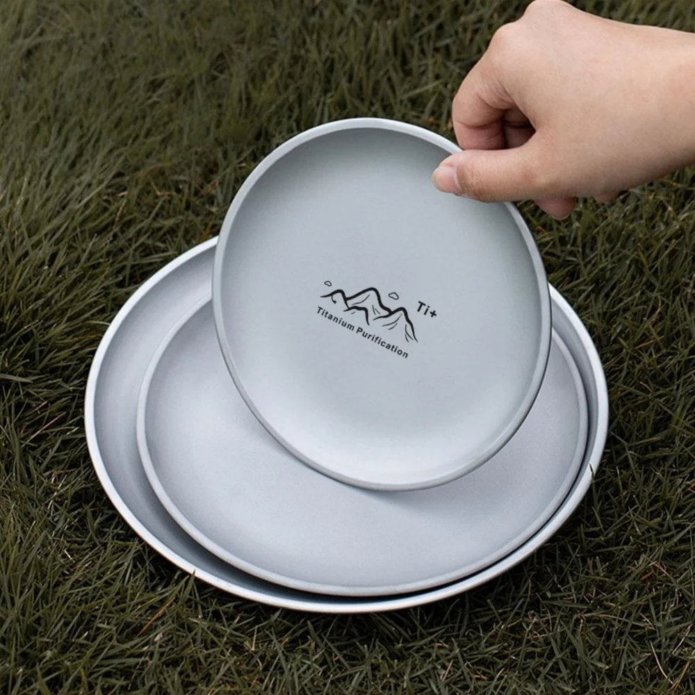Titanium Camping Plate Lightweight Camping Plate For Barbecue Home Dinnerware Round Frosted Picnic Gear Reusable Tableware