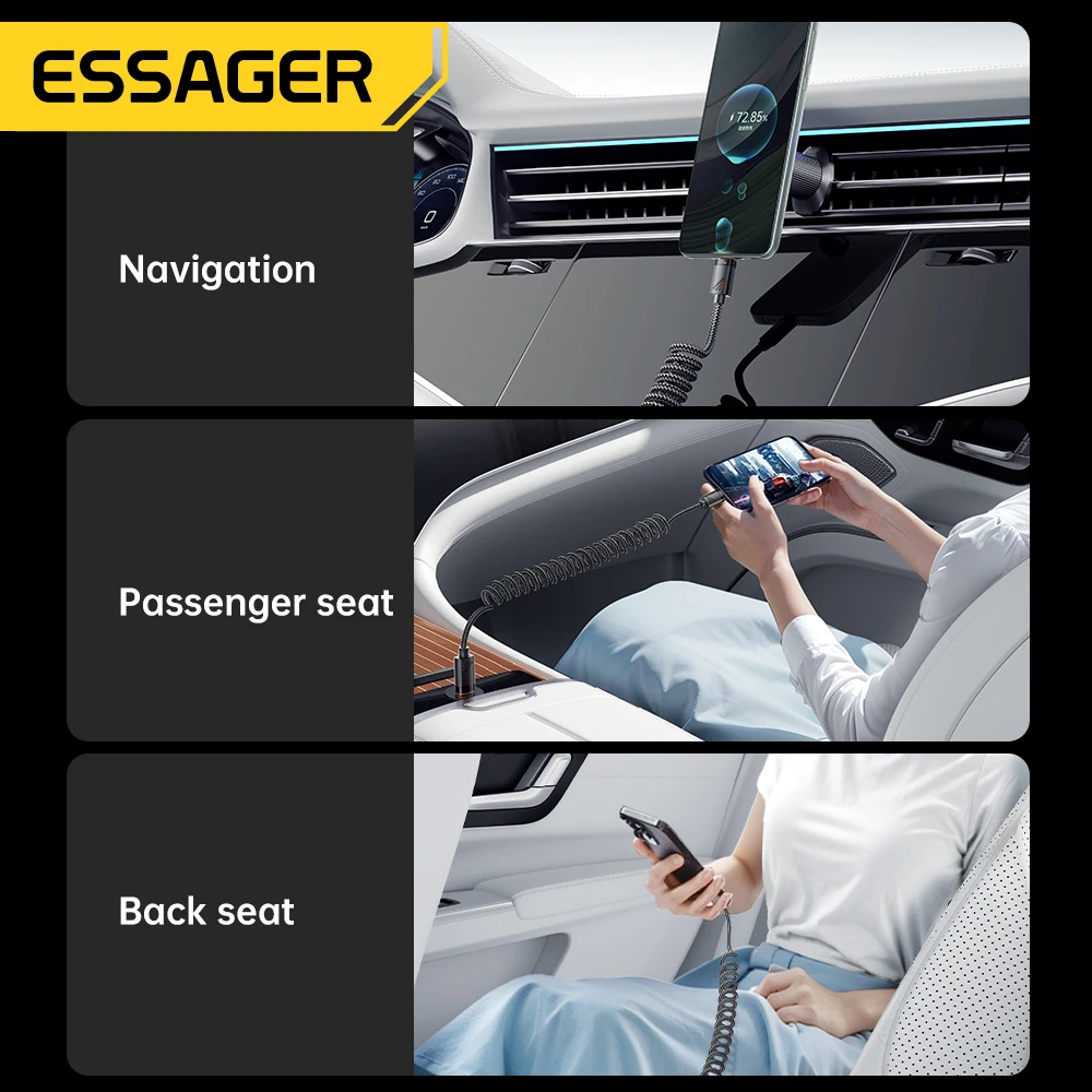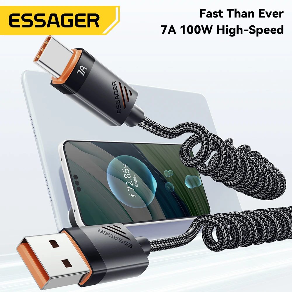aliexpress , ali , shop , ali shop , online , prodavnica , online shop , online prodavnica , kupujem , prodajem , Essager Car Spring Type C Cable For iPhone 16 1514 Xiaomi Samsung 100W PD Fast Charging For Macbook iPad Type C to Type C Cable