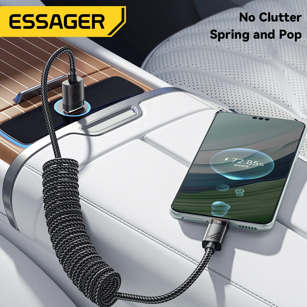 Essager Car Spring Type C Cable For iPhone 16 1514 Xiaomi Samsung 100W PD Fast Charging For Macbook iPad Type C to Type C Cable
