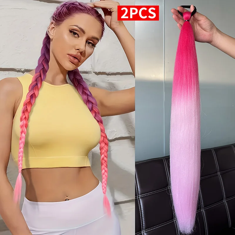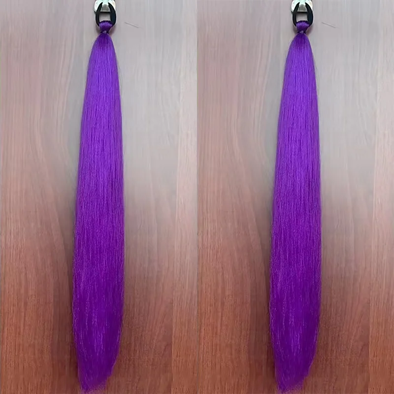 2pcs Party Synthetic Purple Braiding Hair Long Straight DIY Braided Pony Tail Hairpiece Women Hair Accessories for Stage Party