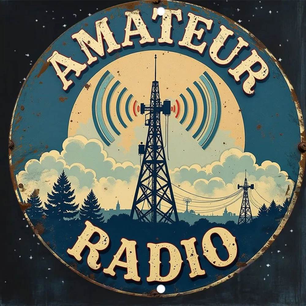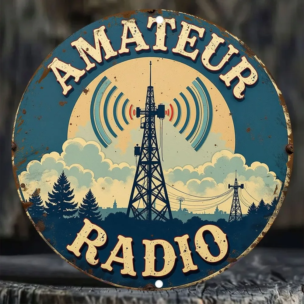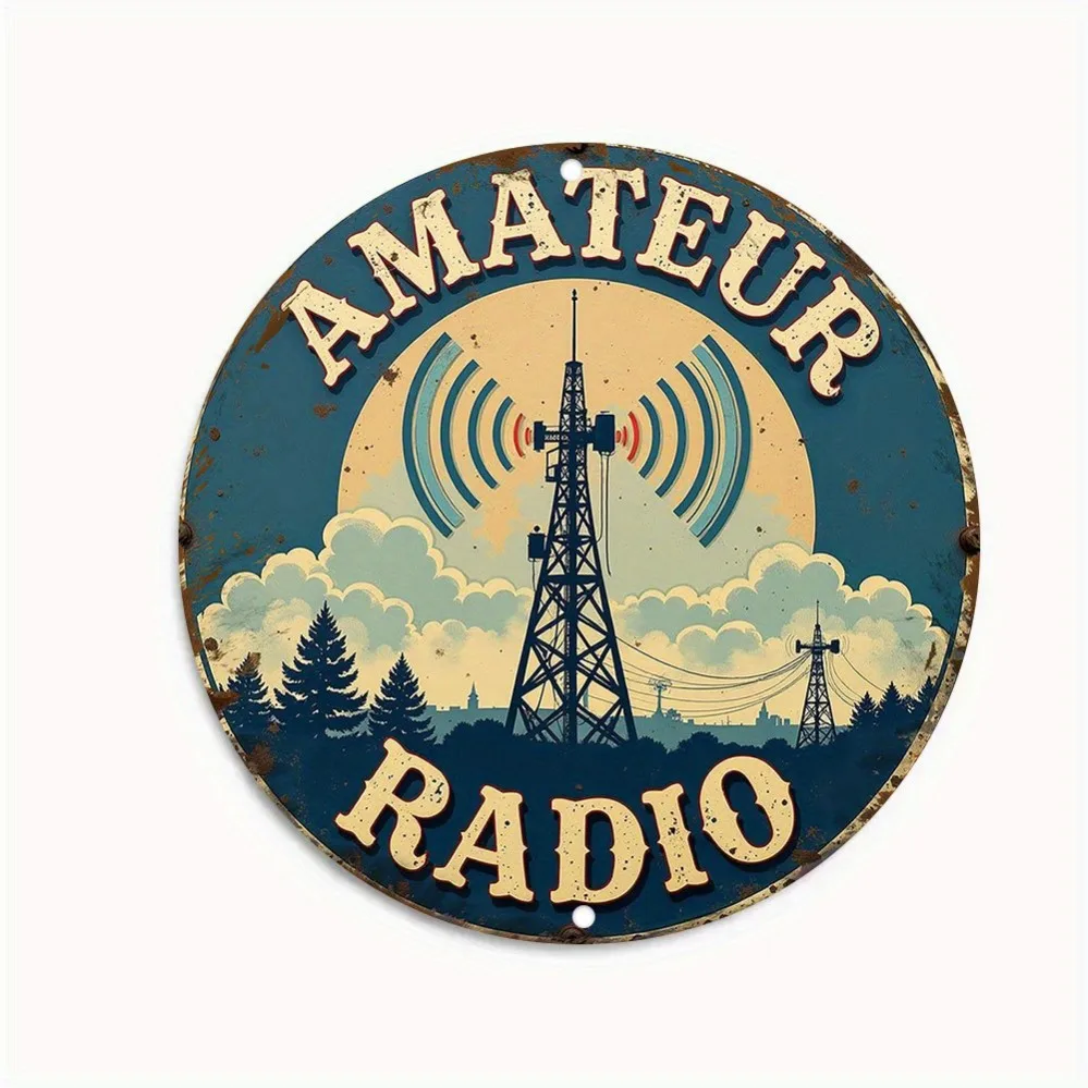 Vintage Amateur Radio Metal Wall Plaque - Old-Style Blue & White Iron Decoration | Waterproof & Effortless to Install | Suitable