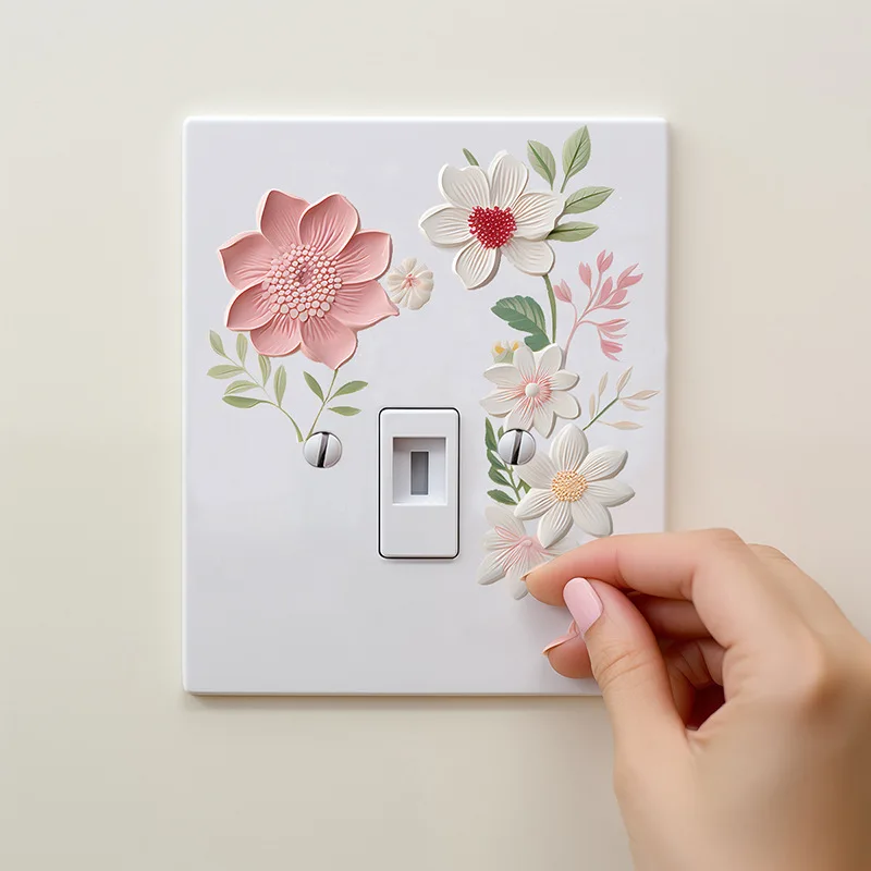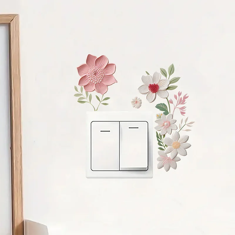 INS Style Flower Switch Sticker, Fresh Blossom Light Switch Decal, Suitable For Living Room Entrance Wall Decoration
