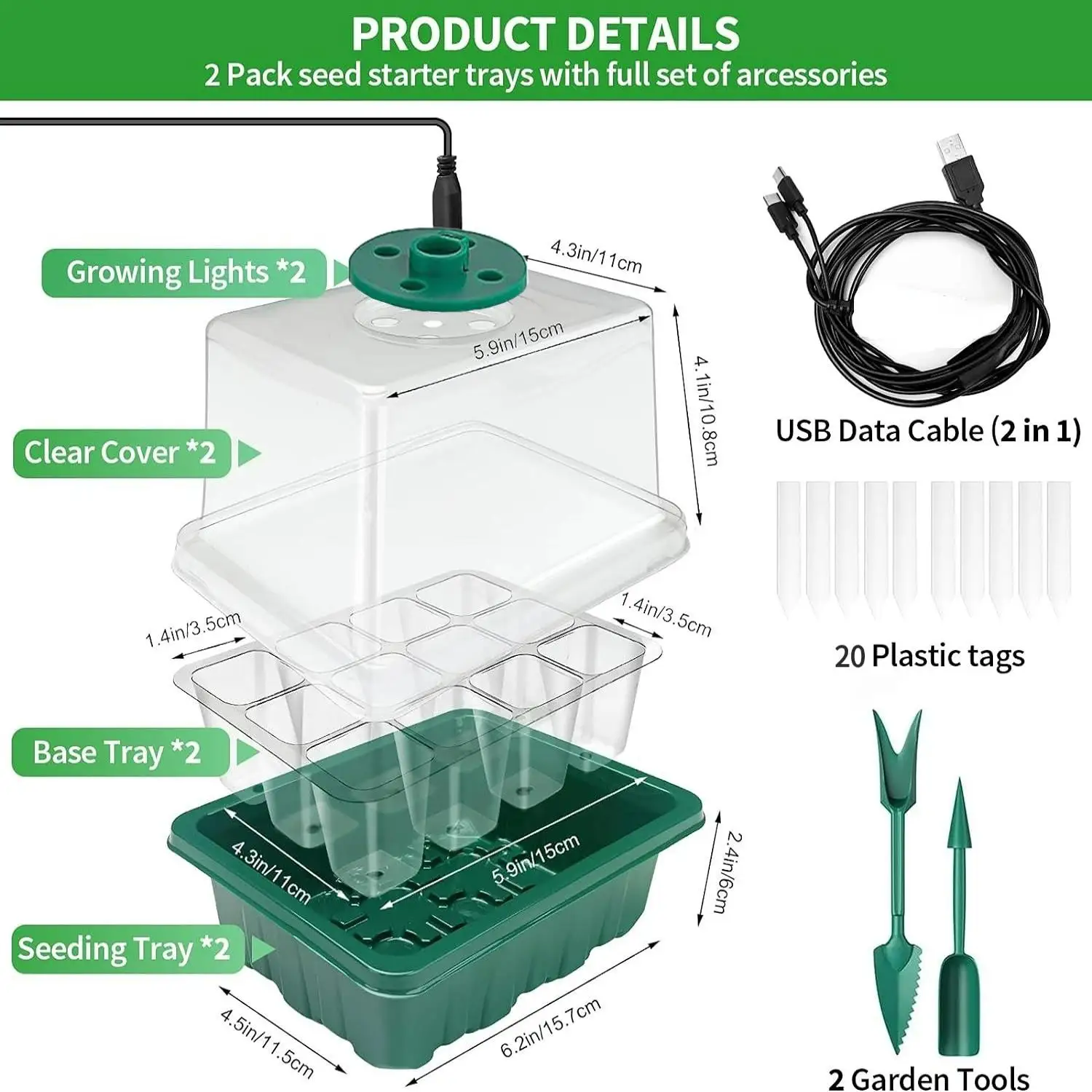Seed starter tray with grow light, 2 seed germination kits, dome with adjustable humidity, seedling starter tray for home use