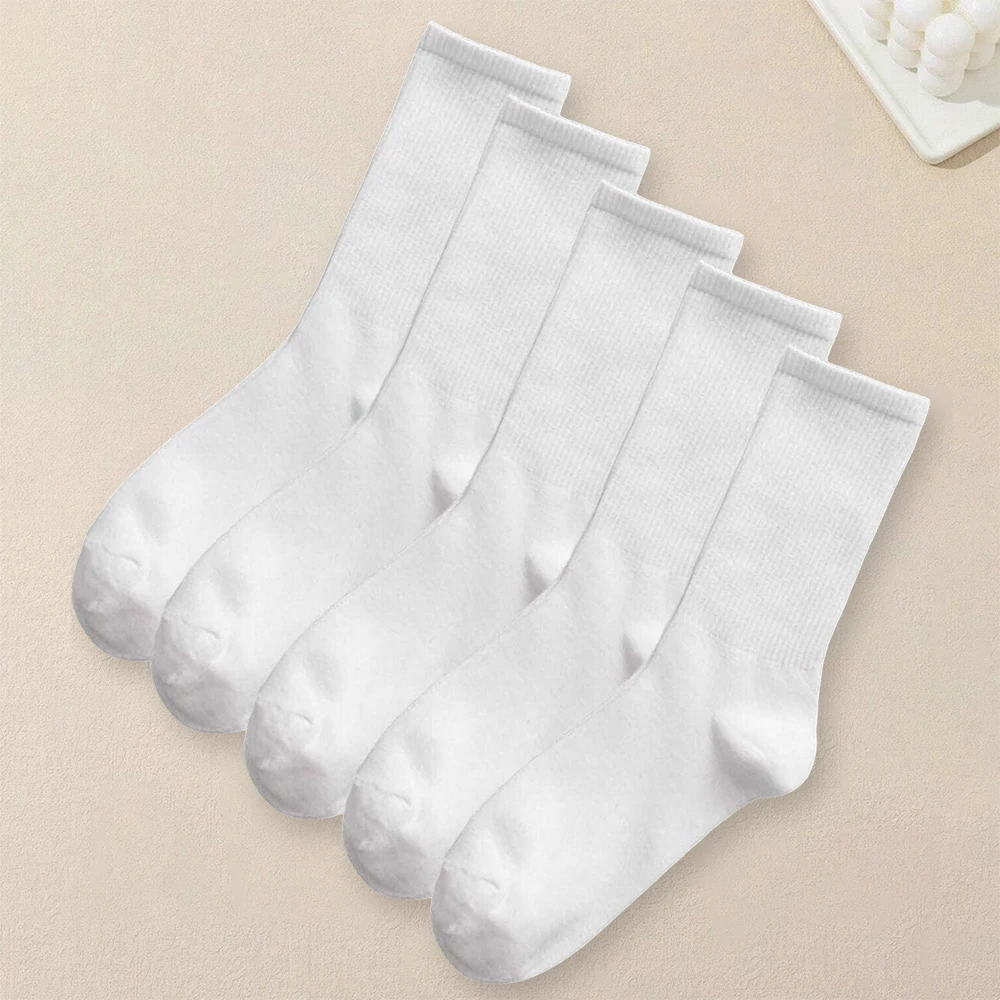 1/510 Pairs Women Solid Color Socks Simple Versatile Fashionable Socks Antibacterial Odor Resistant Breathable Comfortable Socks