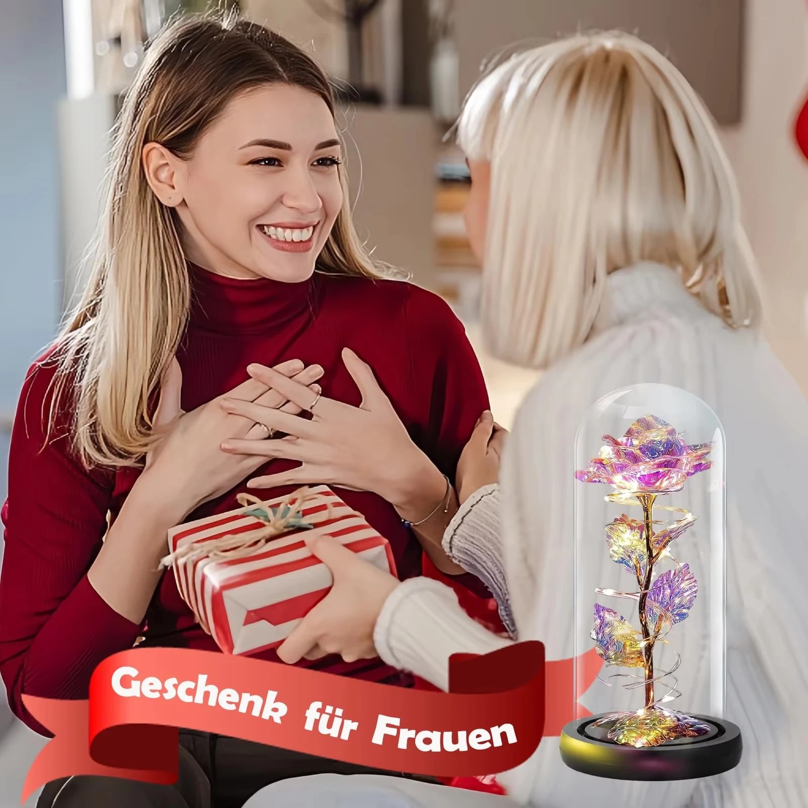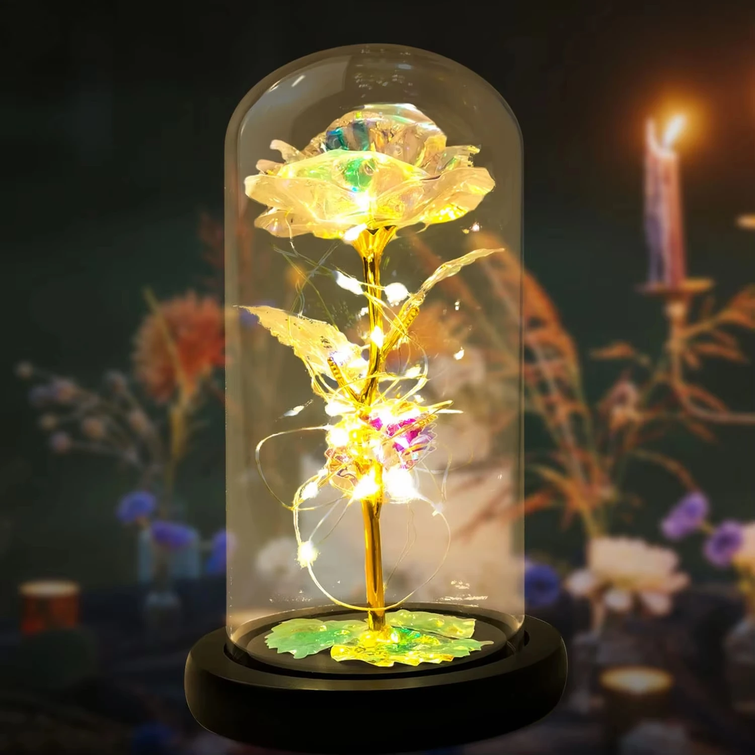 Artificial Rose LED Light Aluminum Glass Eternal Flower Party Supplies Simulation Decoration Anniversary Christmas Women's Gifts