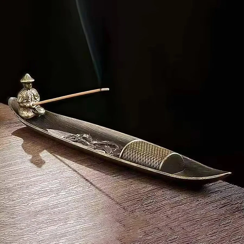 Fashionable Small Boat Incense Burner Fishing Old Man Style Incense Burner Home Indoor Sandalwood Incense Insert Incense Burner