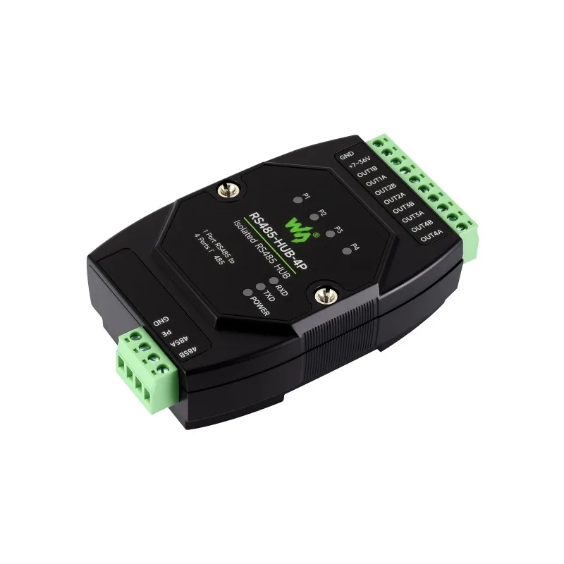 Waveshare RS485-HUB-4P,Industrial-grade Isolated 4-Ch,Rail-mount Support,Wide Baud Rate Range, Expands 4-ch RS485 Sub Ports Via
