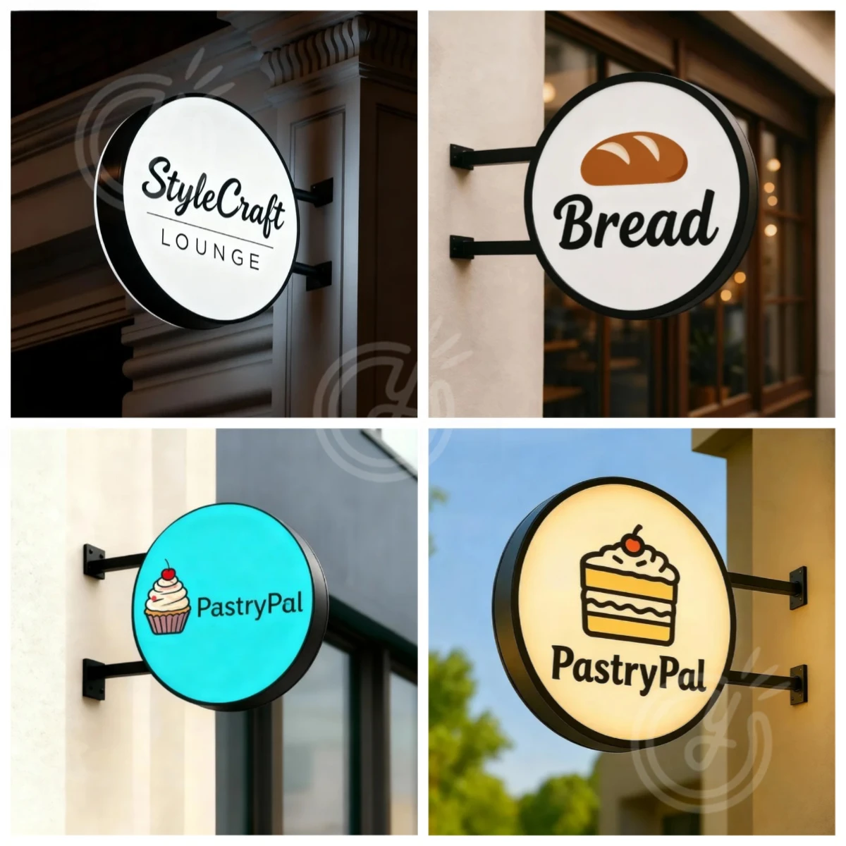 Exterior Illuminated Round Blade Signage Sign Double Sided Custom Led Outside the House Wall Mounted Window Circle Addressable