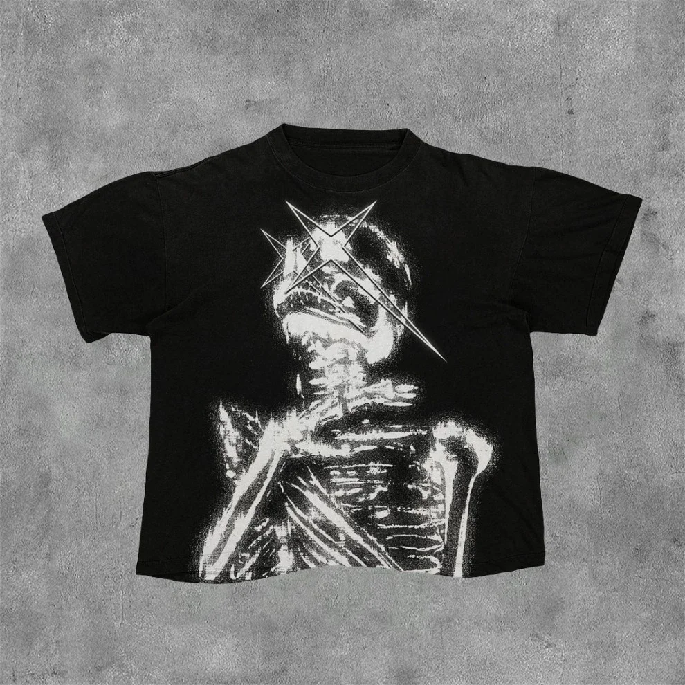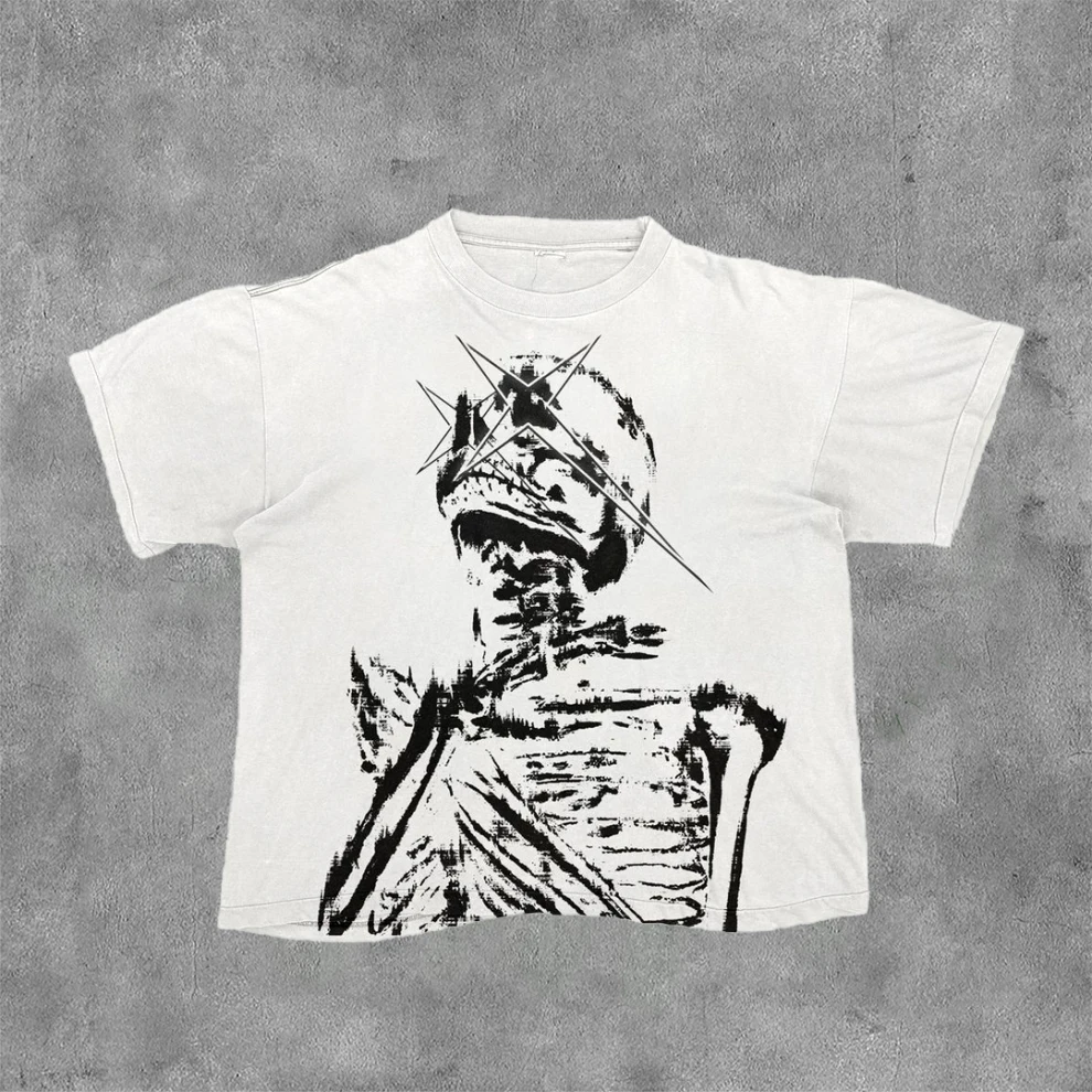 Vintage Dark Centipede Skeletal Graphic Cotton Print T-shirt Men Y2K Summer Short Sleeves Oversize T-shirt Women Casual Tee Tops