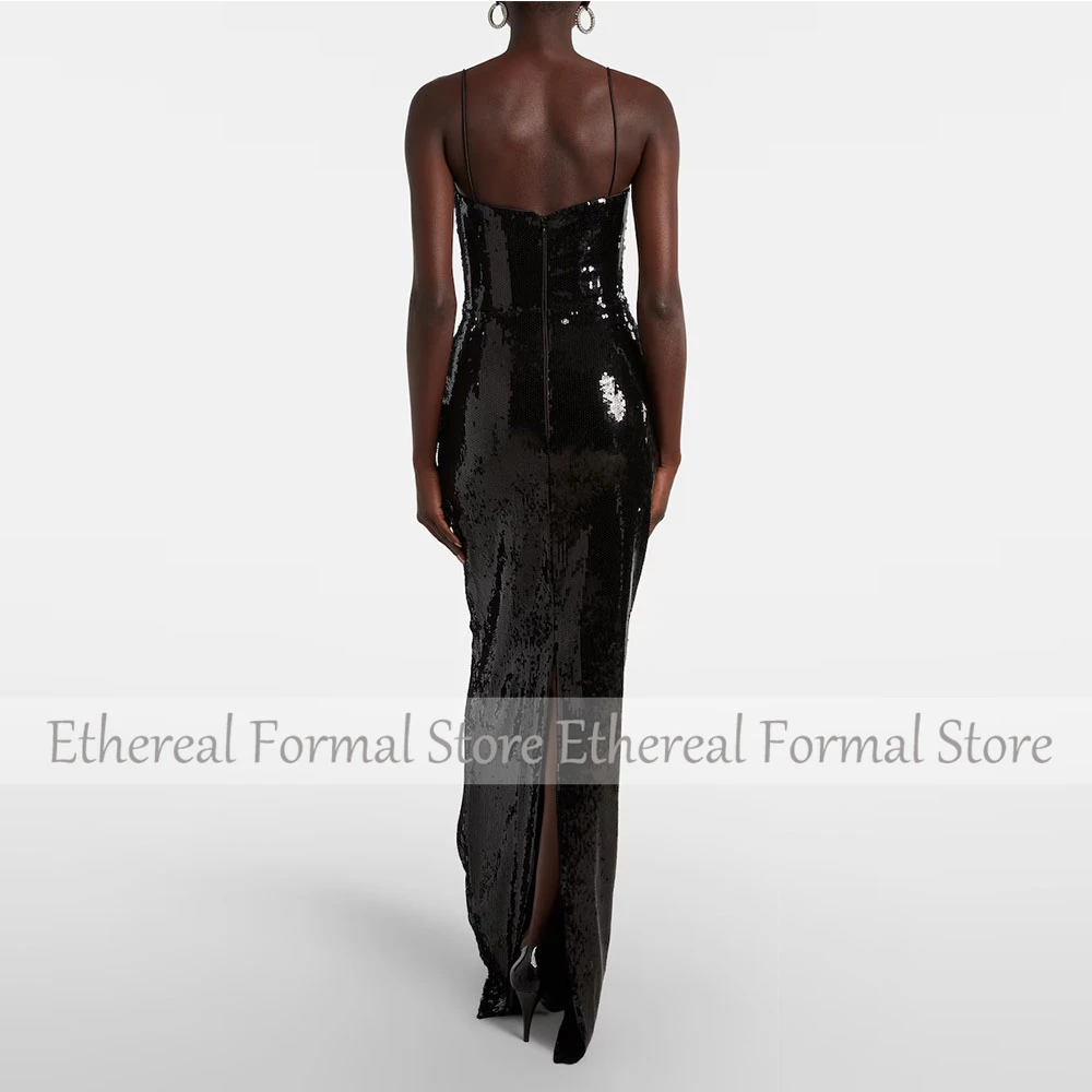 Black Sequin Women's Evening Gown Mermaid Floor Length Formal Party Dress Spaghetti Straps Saudi Dress Beading Prom Dress