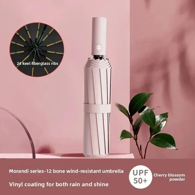 24-Bone automatic umbrella Men's and women's folding weather and rain sun umbrella Student sun protection UV protection umbrella