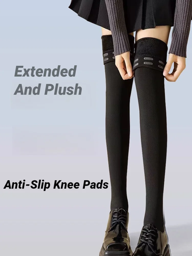 Women's Plus JK Style Thigh High Stockings Plus Size Non-slip Silicone Warm Plush Lined Over The Knee Socks For Fall & Winter